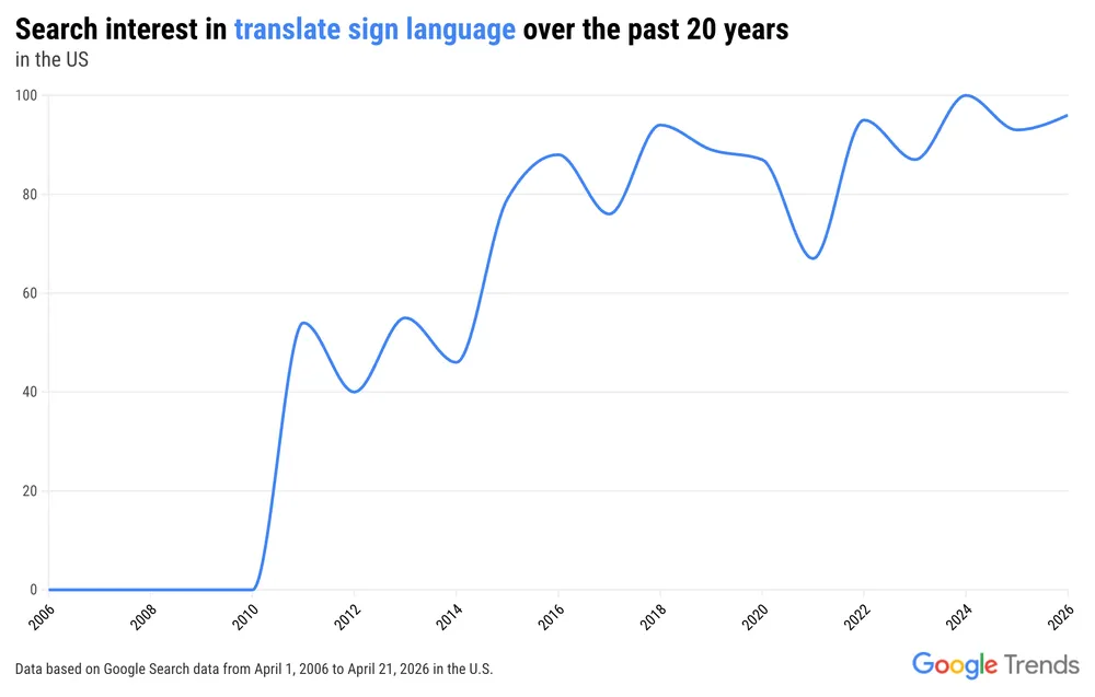 มีการค้นหาการแปล American Sign Language เพิ่มขึ้นอย่างต่อเนื่อง สะท้อนความสำคัญของภาษามือในสังคม