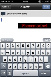 หน้านี้เป็นหน้าที่ใช้อัพสเตตัส หน้าตาเรียบง่าย มีให้เลือกเปิดปิด keyboard เพื่อตั้งค่า Public / Private