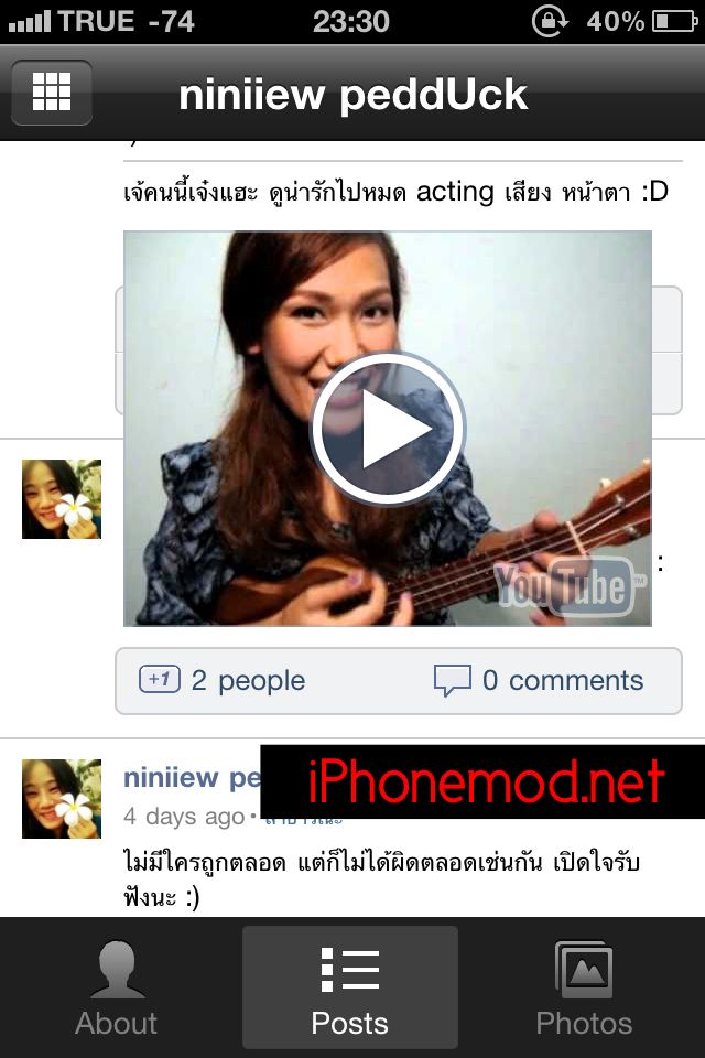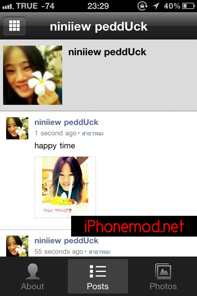 นี่เป็นส่วน Profile ที่เข้าจากหน้าหลัก อารมณ์คล้าย Facebook ค่ะ เห็นรูปภาพและข้อความ ที่เราอัพ
