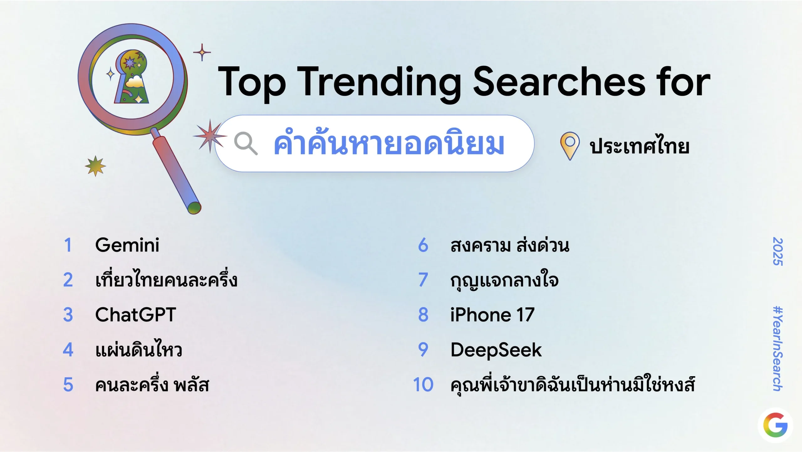 Google เผยคำค้นหายอดนิยมในประเทศไทย ปี 2025