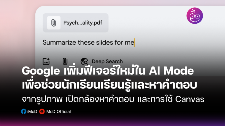 Google อัปเดตฟีเจอร์ AI Mode เพิ่มความสามารถ เช่น การอัปโหลดรูปภาพ ไฟล์ PDF หรือเปิดกล้องแบบเรียลไทม์ และการใช้ Canvas เพื่อช่วยนักเรียนค้นหาคำตอบได้ดีขึ้น