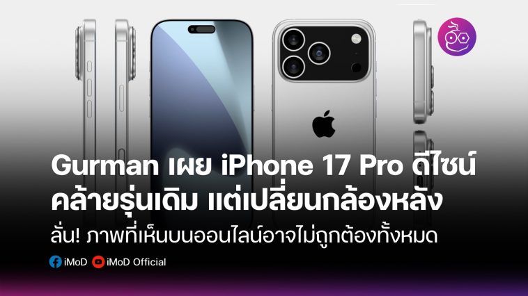 Gurman ยังเผยอีกว่า iPhone 17 Pro จะไม่มีด้านหลังแบบทูโทน กล้องจะมีสีเดียวกับตัวเครื่อง สื่อให้เห็นว่าการเปลี่ยนแปลงดีไซน์ที่ค่อยเป็นค่อยไปของ Apple