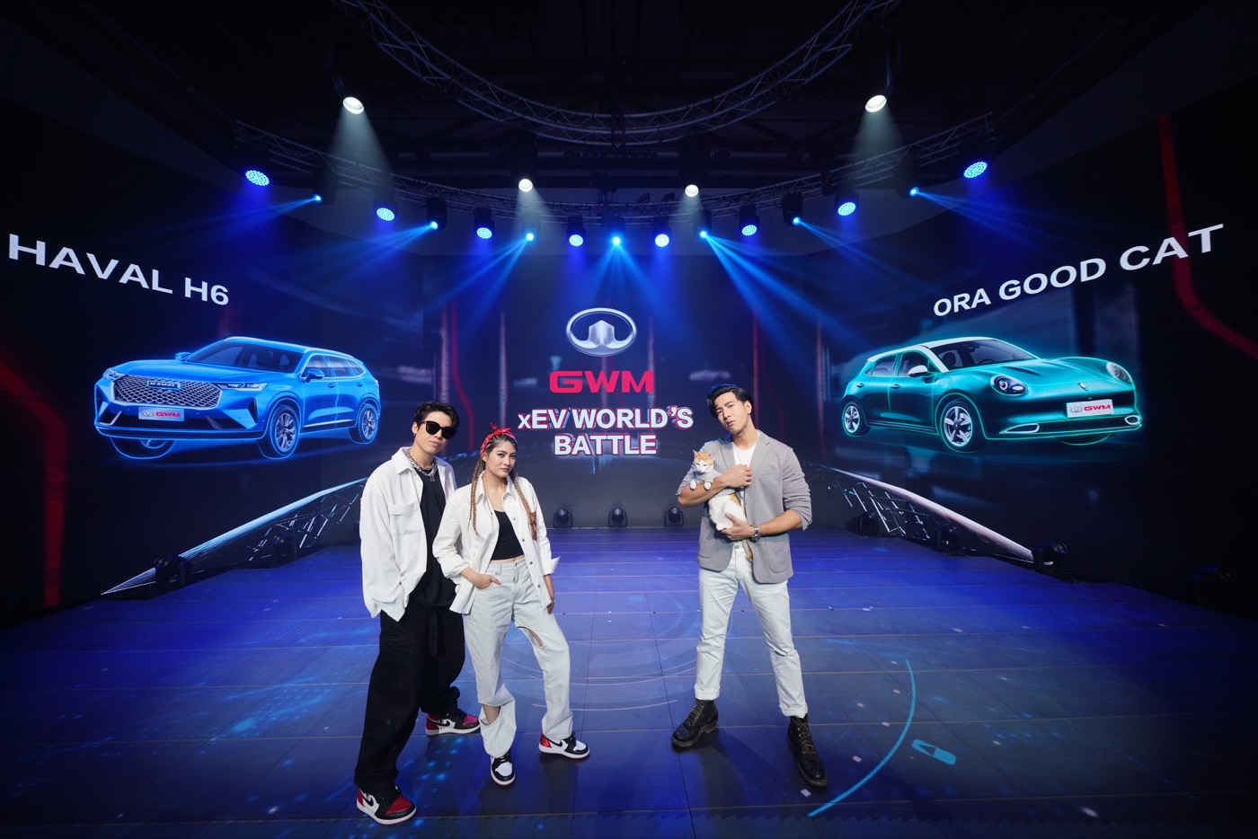 นอกจากนี้ ภายในงานยังมีศิลปินชั้นนำขวัญใจชาวไทยอย่างคู่รัก “มาร์กี้ ราศรี บาเล็นซิเอก้า” และ “ป๊อก ภัสสรกรณ์ จิราธิวัฒน์” ร่วมด้วย “โย่ง อาร์มแชร์” และน้องแมว “ส้มหยุด” มาร่วมแสดงความยินดีกับการเปิดตัวแบรนด์ในครั้งนี้อีกด้วย พร้อมเปิดเวที GWM xEV World’s Battle ขับเคี่ยวกันด้วยเพลงซึ่งได้รับการโหวตจากแฟนๆ ชาวไทย บรรยากาศเต็มไปด้วยรอยยิ้มและความสนุกสนาน โดยทั้ง 3 ท่านได้เชิญชวนคนไทยให้ติดตามอัพเดทข่าวสารของ เกรท วอลล์ มอเตอร์ ประเทศไทย รวมถึงอดใจรอ All New HAVAL H6 และ ORA Good Cat ต่อไปด้วยกันในอนาคต