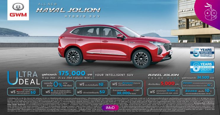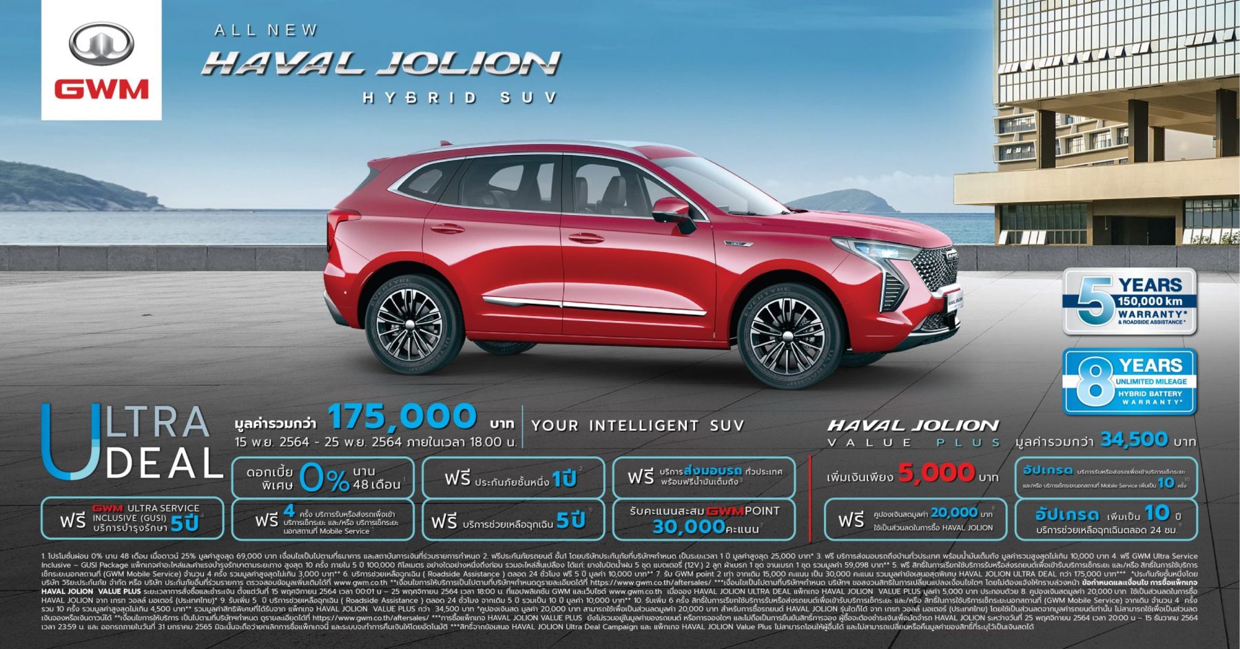 โดยแคมเปญ ULTRA DEAL ของรถยนต์ All New HAVAL JOLION Hybrid SUV มาพร้อมข้อเสนอและสิทธิประโยชน์ต่าง ๆ อาทิ