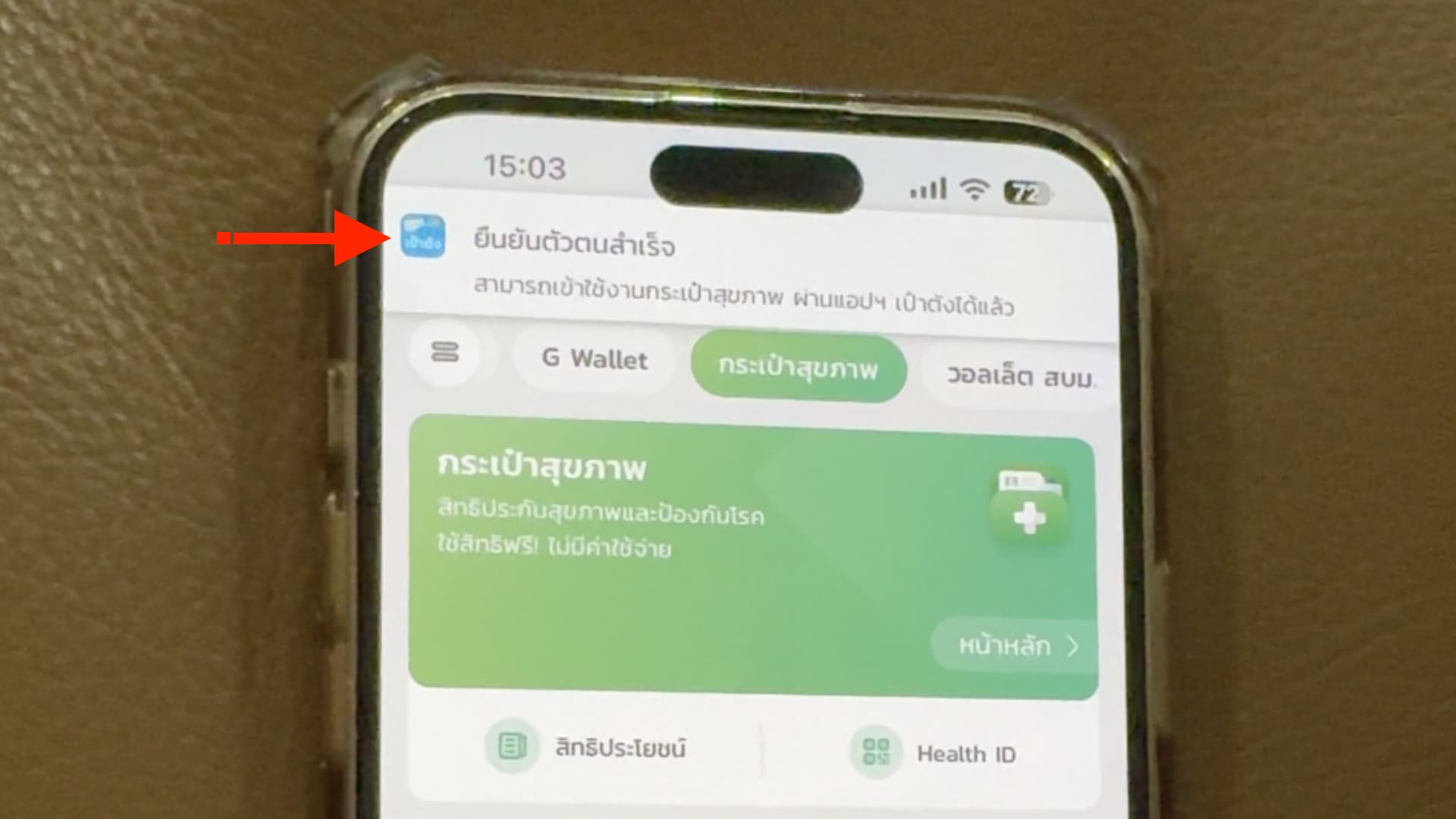 เมื่อระบบตรวจสอบข้อมูลเสร็จ จะมีการแจ้งเตือนจากแอปว่า “ยืนยันตัวตนสำเร็จ” เมื่อขึ้นแบบนี้ก็แปลว่าคุณสามาราถเข้าไปใช้งานกระเป๋าสุขภาพได้แล้ว