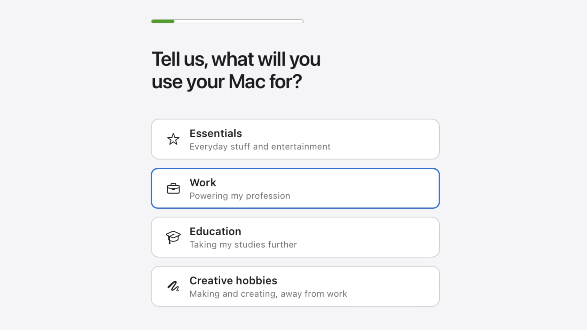 โดยหน้าเว็บนี้จะถามคำถาม (ภาษาอังกฤษ) เกี่ยวกับความต้องการในการใช้งาน Mac ของคุณ เช่น