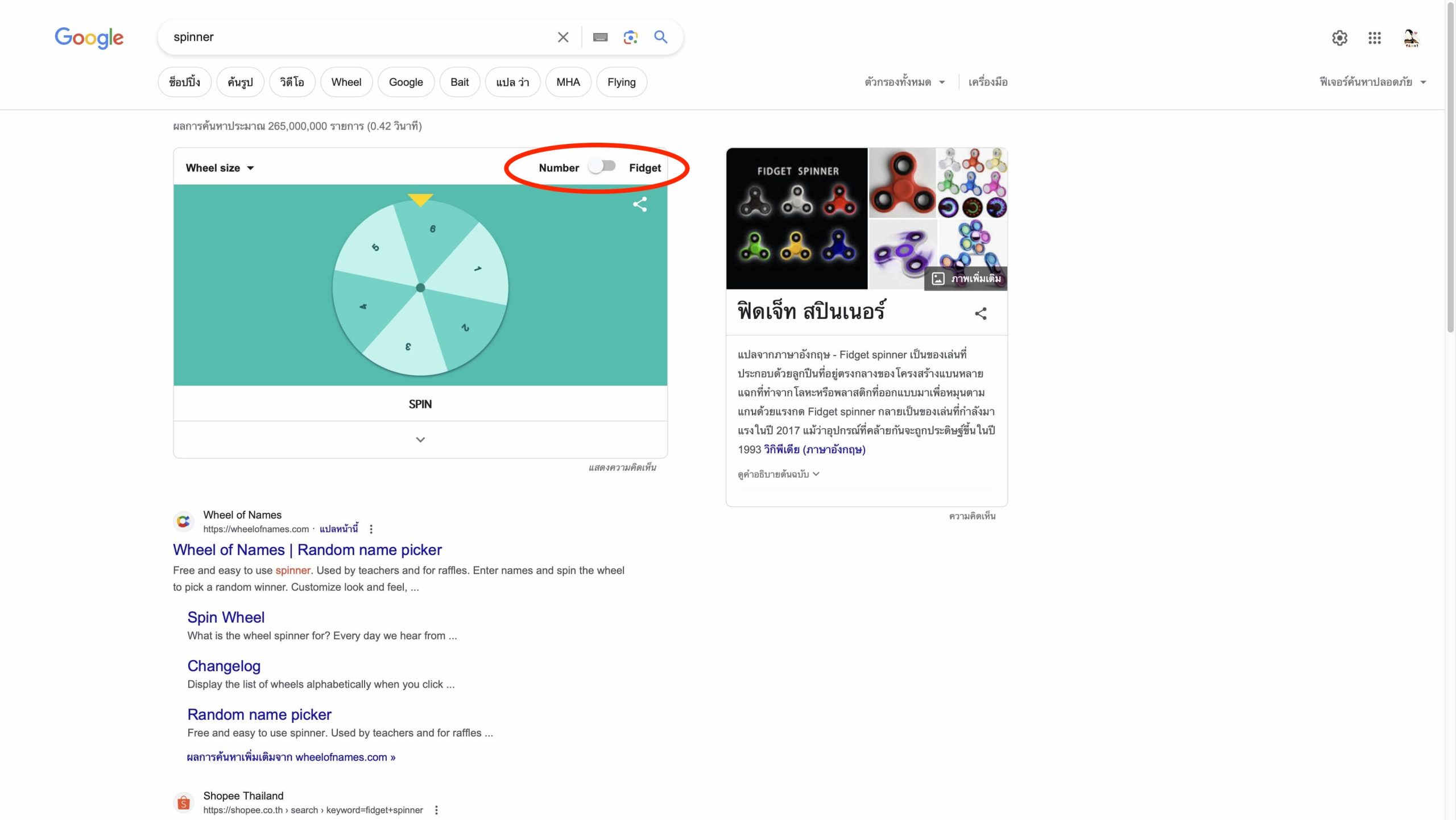 เราสามารถหมุนหรือเล่นวงล้อ แต่อย่าลืมเปลี่ยนจาก Number เป็น Fidget ก่อนเล่นนะ