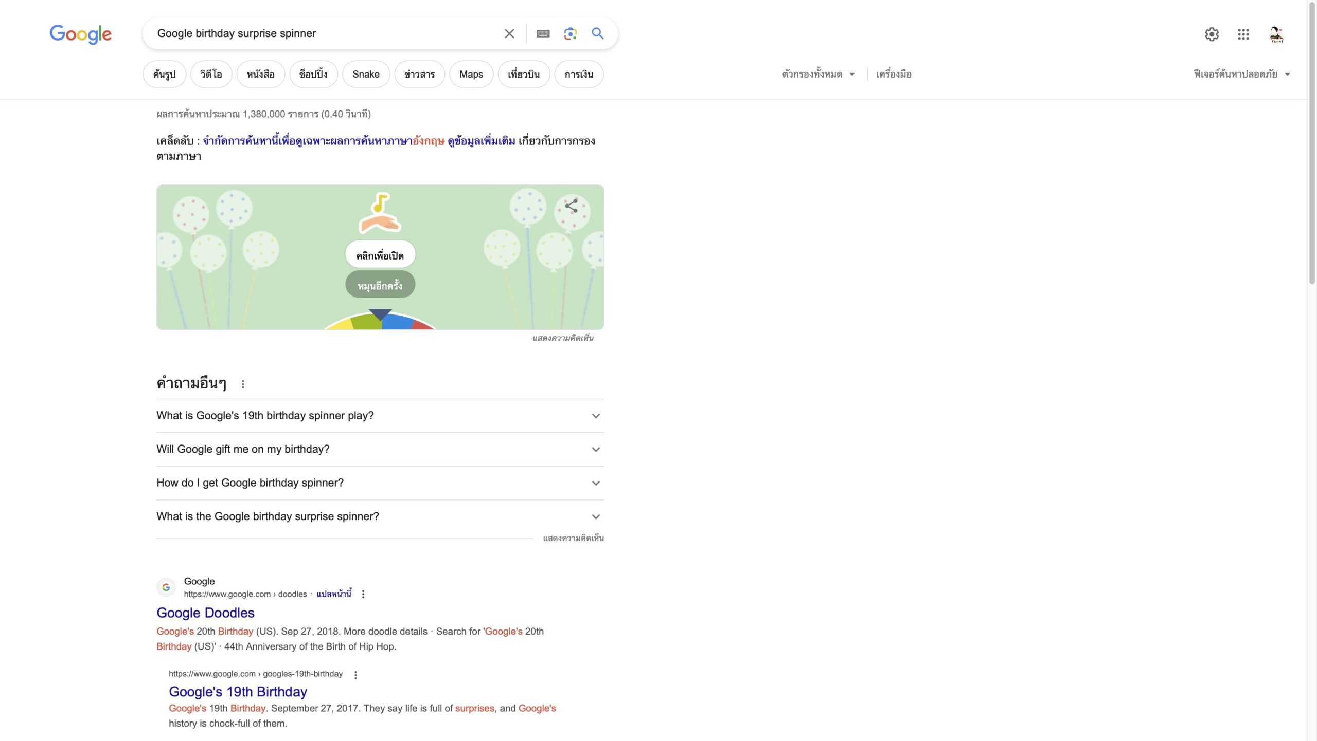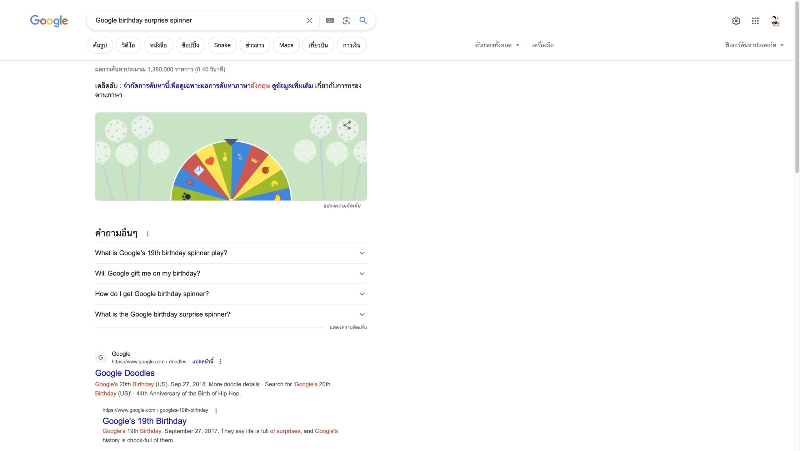 10. Google birthday surprise spinner