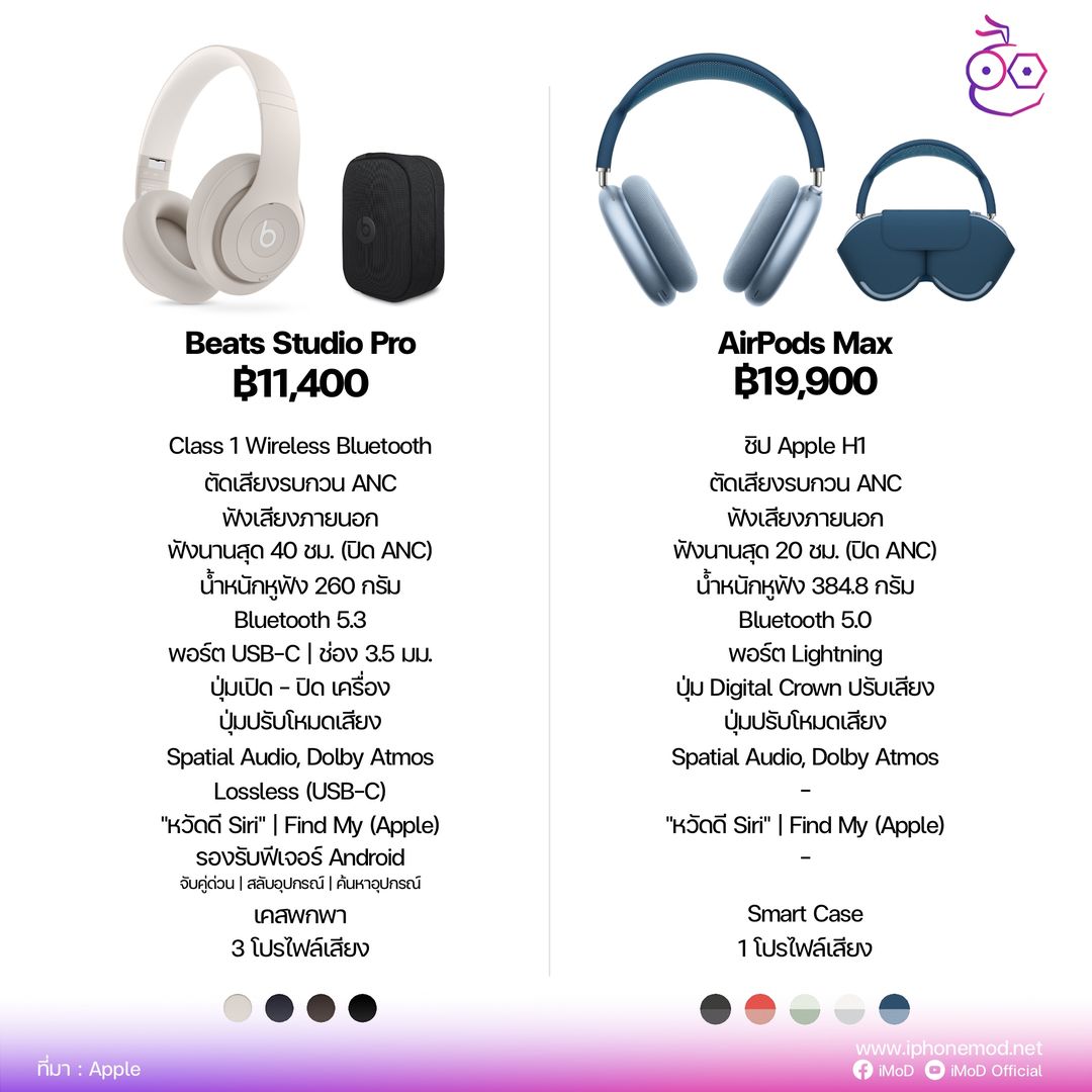 Beats Studio Pro หูฟังครอบหูรุ่นใหม่! เปิดให้สั่งซื้อแล้ว ทีมงานรวบรวมสิ่งที่น่าสนใจมาให้ชม พร้อมเทียบสเปคกับ AirPods Max