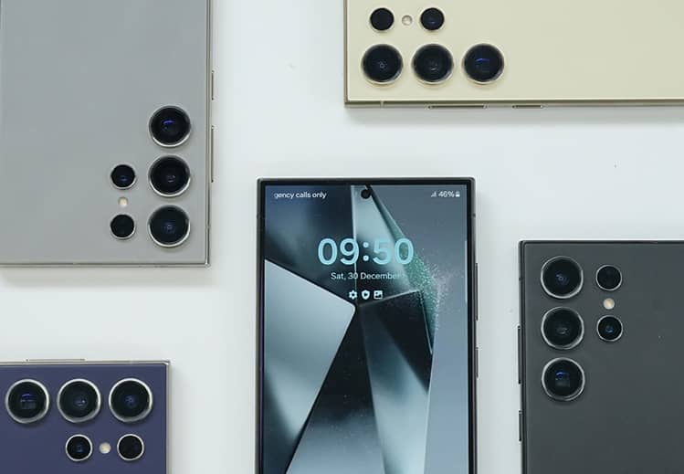 Galaxy S24 Ultra มี 4 สี ได้แก่ Titanium Gray, Titanium Black, Titanium Violet and Titanium Yellow และ 3 สีพิเศษ (เฉพาะsamsung.com) ได้แก่ Titanium Blue, Titanium Green, และ Titanium Orange