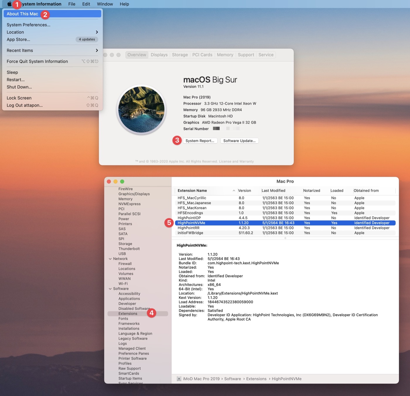 หลังจากที่ macOS Big Sur 11.0 ปล่อยให้อัปเดตค่อนข้างนานแล้วแต่ผมยังไม่ได้อัปเดตให้เครื่อง Mac Pro 2019 เครื่องหลักที่ใช้งานเนื่องจากมีการอัปเกรดอุปกรณ์เสริมเข้าไปเกรงว่าจะทำงานได้ไม่เต็มที่ หนึ่งอย่างที่อัปเกรดคือการ์ด RAID จาก HighPoint ที่ช่วยเพิ่มเนื้อที่เก็บข้อมูลให้เครื่อง วันนี้ผมได้อัปเตด macOS Big Sur แล้วก็ใช้งานได้กับการ์ดนี้ เลยนำมาบอกให้กันได้ทราบ