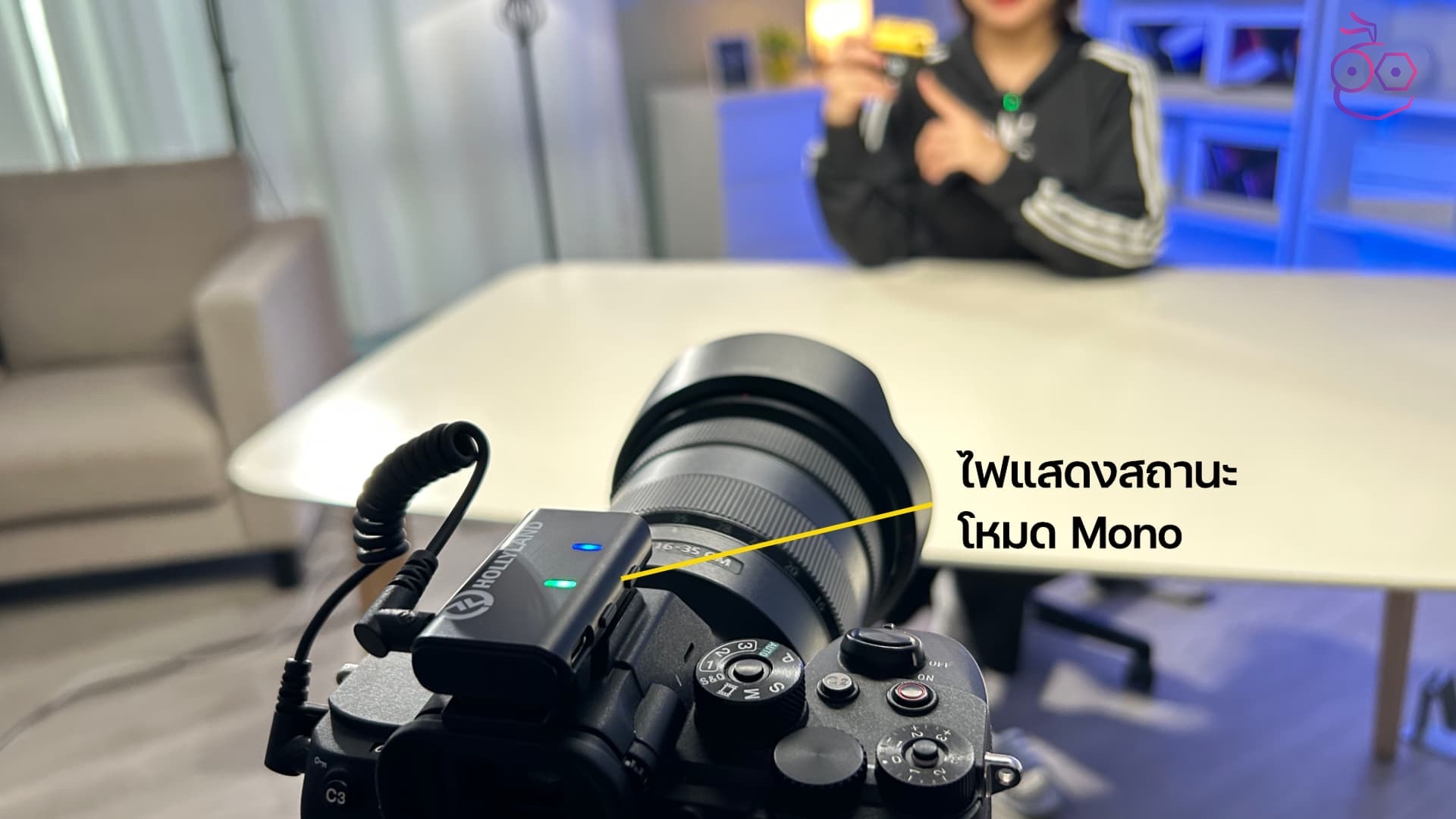 💡วิธีเปิดใช้งานโหมด Mono แบบใช้ไมค์ตัวเดียว : กดปุ่ม M/- ค้างไว้ 5 วินาที ให้สังเกตุที่ตัวรับสัญญาณว่าไฟที่แสดงมีสีที่แตกต่างกันหรือยัง