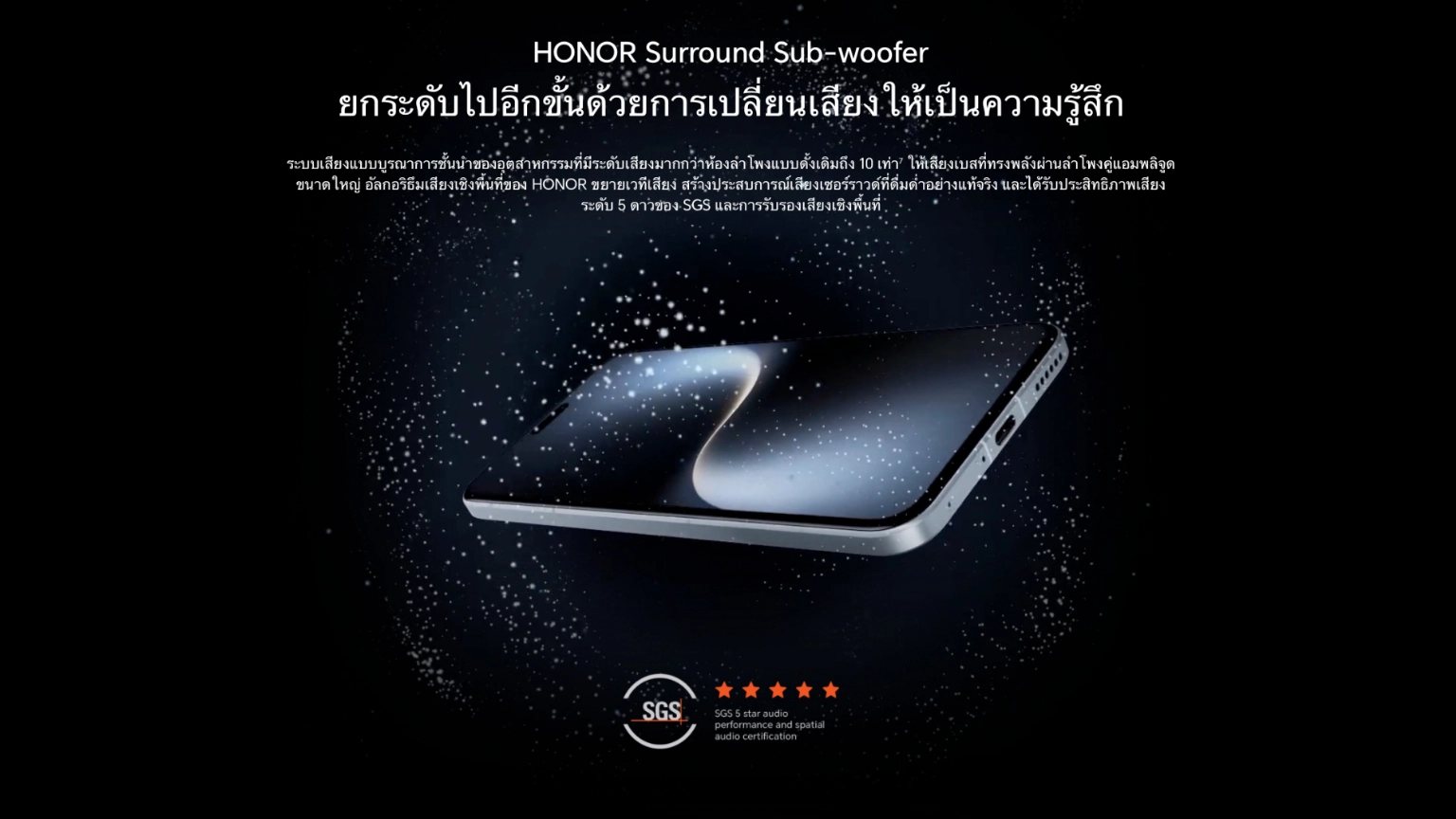 นอกจากนี้ HONOR Magic7 Pro มาพร้อม HONOR Surround Subwoofer ลำโพงสเตอริโอที่มีช่องเสียงขนาดใหญ่พิเศษและระบบเสียง Spatial พร้อมอัลกอริธึมเพิ่มคุณภาพเสียงเบส เพื่อประสบการณ์เสียงที่ทรงพลังและก้องกังวาน อีกทั้งการจำลองเสียงสามมิติให้ผู้ใช้ดื่มด่ำกับเสียงเต็มที่ ผสานกับเทคโนโลยี Dual-way AI Noise Cancellation ช่วยลดเสียงรบกวนระหว่างการโทรทั้งสองฝ่ายในโหมดลำโพงและหูฟัง ให้การสื่อสารชัดเจนไม่ว่าจะเป็นการโทรแบบตัวต่อตัวหรือประชุมหลายคน พร้อมฟีเจอร์ AI Privacy Call ที่ปรับระดับเสียงตามสภาพแวดล้อม ช่วยรักษาความเป็นส่วนตัวในพื้นที่ที่มีเสียงรบกวน เช่น ลิฟต์ ทำให้การสนทนาเป็นไปอย่างมั่นใจและปลอดภัย
