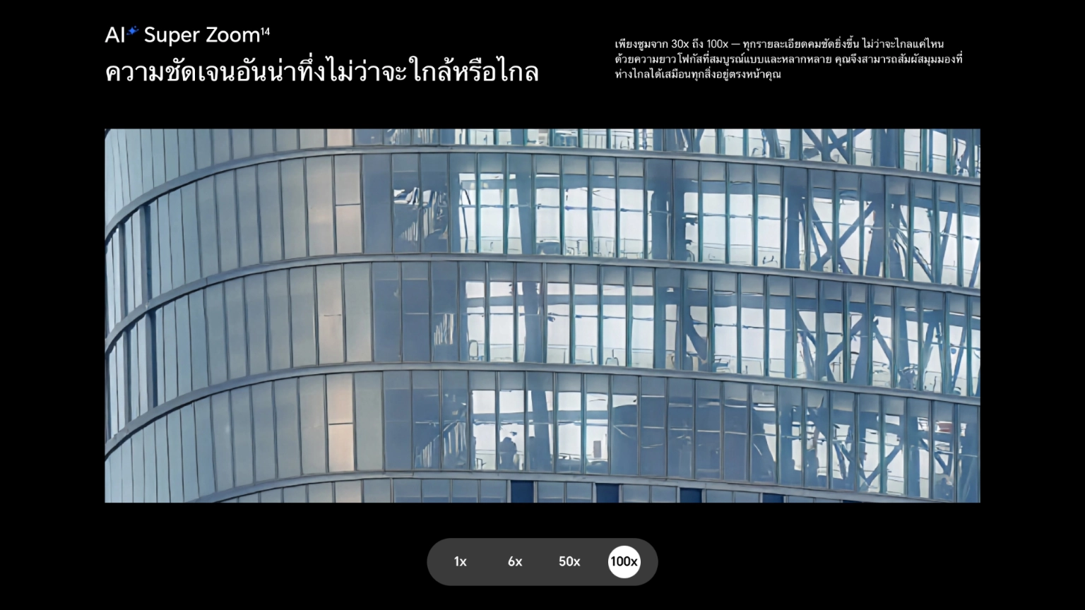 นอกจากนี้ ยังมอบประสบการณ์ถ่ายภาพบุคคลที่คมชัด พร้อม AI Super Zoom รองรับการซูมตั้งแต่ 30x ถึง 100x เหมาะสำหรับการเก็บภาพทิวทัศน์ คอนเสิร์ต และเทศกาลดนตรี อีกทั้งยังมีโหมด Stage ที่พัฒนาใหม่ด้วย AI ที่ช่วยปรับปรุงการถ่ายภาพบนเวทีในสภาพแสงที่ท้าทาย