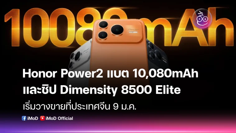 Honor เปิดตัว Power2 ในจีน มาพร้อมแบตเตอรี่ความจุ 10,080mAh ชาร์จไว 80W ใช้ชิป Dimensity 8500 Elite และดีไซน์ตัวเครื่องบางเพียง 7.98 มม.