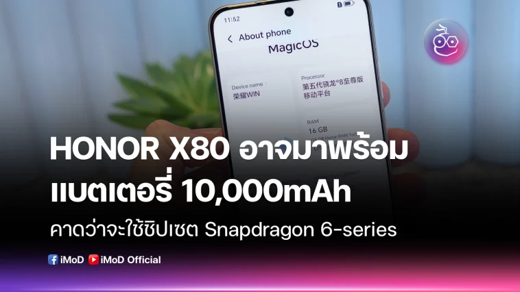 HONOR X80 อาจมาพร้อมแบตเตอรี่ 10,000mAh