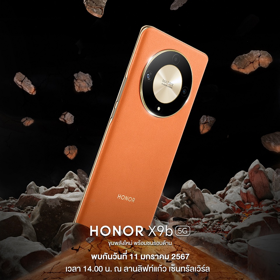 HONOR เตรียมเปิดตัวสมาร์ตโฟนรุ่นใหม่ HONOR X9b มือถือสุดแกร่ง วัสดุสุดพรีเมียม ชูจุดเด่นหน้าจอและตัวเครื่องกันกระแทก 360 องศา พร้อมขาย 12 ม.ค.นี้!