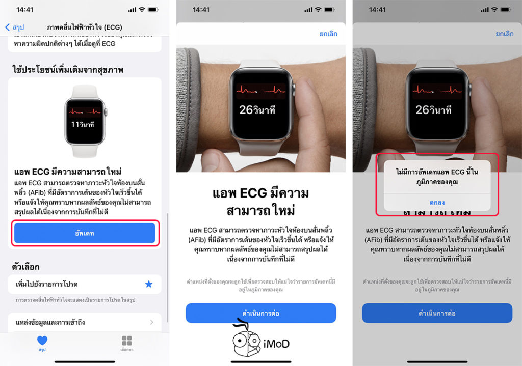 เมื่อลองเช็คอัปเดตแอป ECG ในแอปสุขภาพ (Health) ส่วนของ ECG แล้ว พบว่าเวอร์ชัน 2 ยังไม่ปล่อยอัปเดตในประเทศไทย
