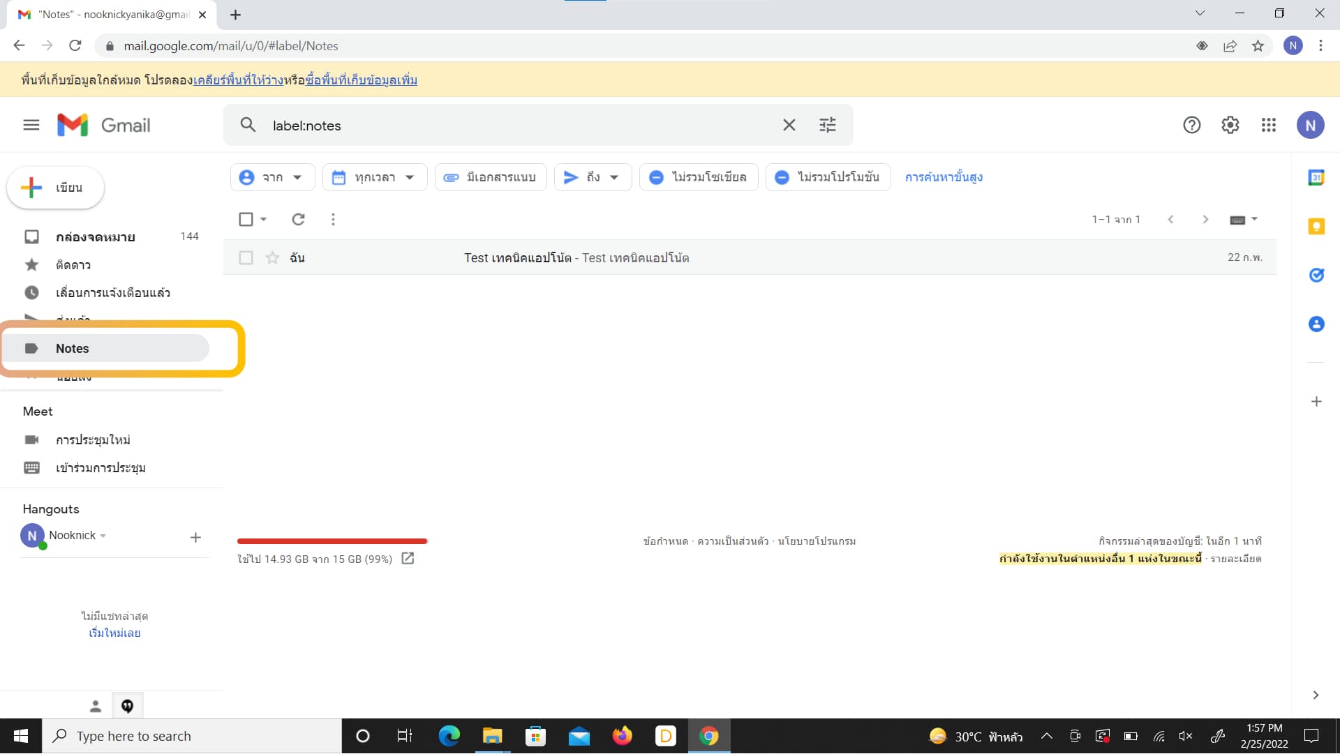 ตัวอย่างการเปิดดูโน้ตในคอมพิวเตอร์ ในเว็บไซต์ gmail.com