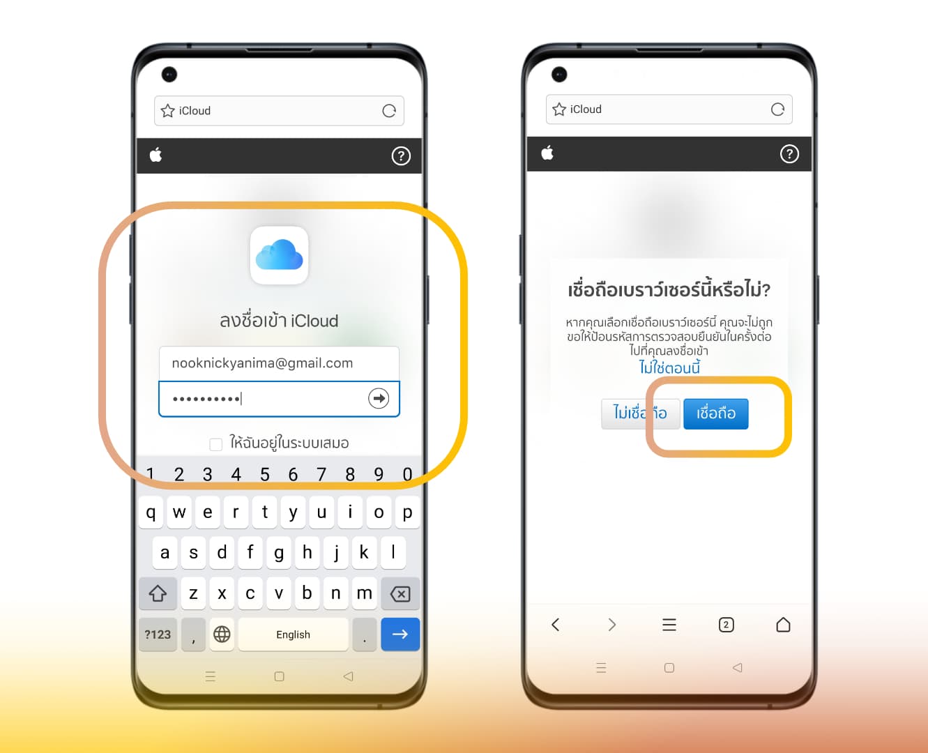 ให้เข้าไปที่เว็บไซต์ www.icloud.com จากบราวเซอร์บนมือถือ