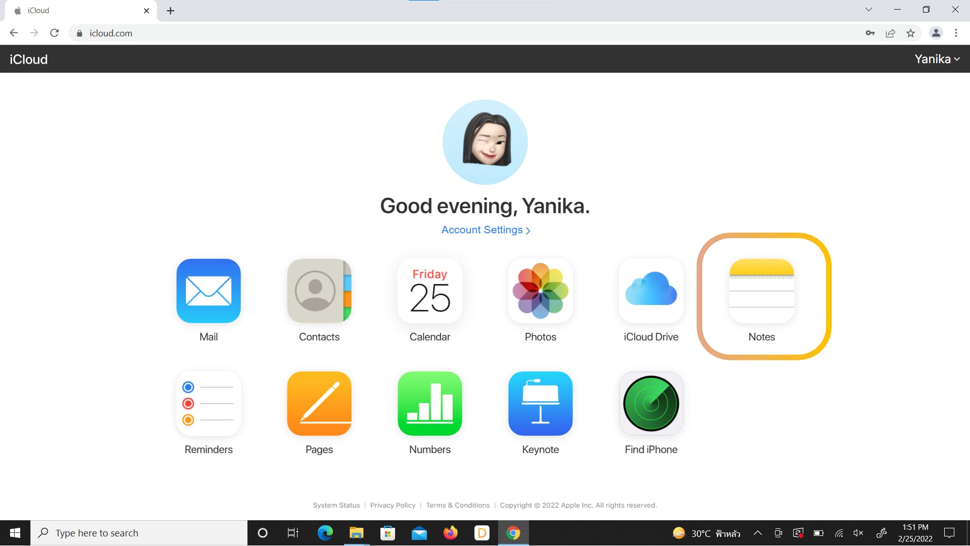 - เข้าถึงโน้ตบนคอมพิวเตอร์ หรือ PC ผ่านเว็บไซต์ www.icloud.com