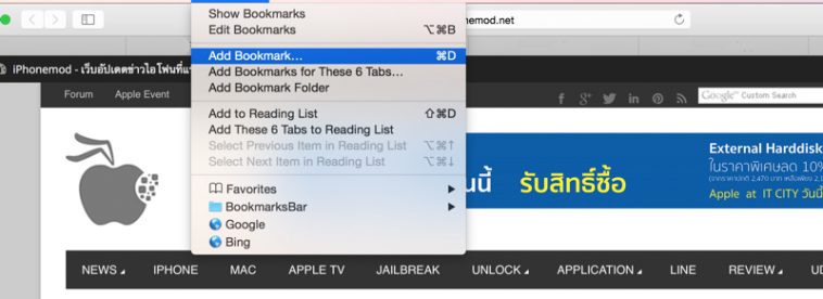 วิธีการเพิ่ม Bookmarks/Favourites ใน Safari บน Mac OS X