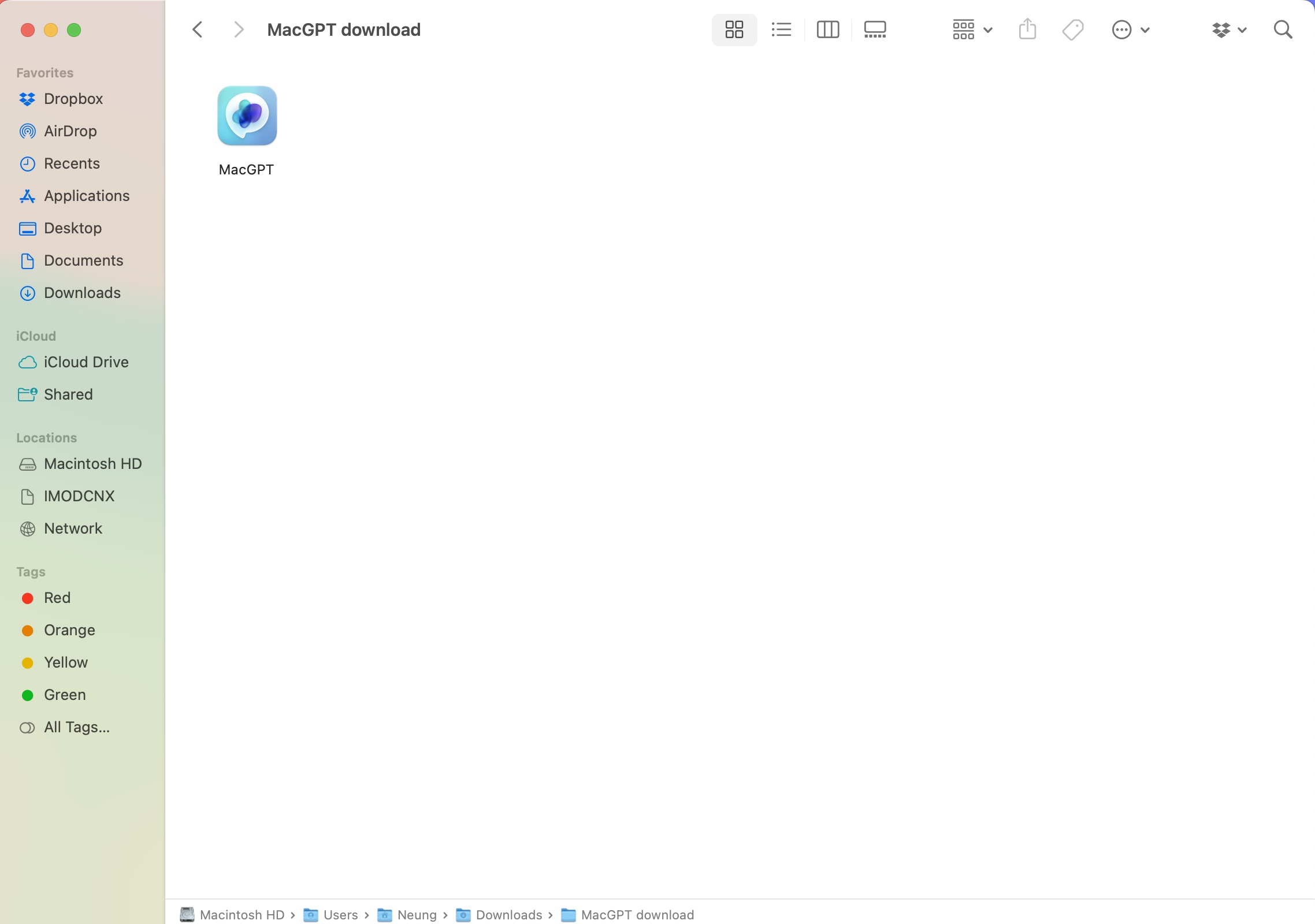 4. หลังจากดาวน์โหลดมาแล้วให้ทำการ Install MacGPT จะแอปที่เราดาวน์โหลดมา
