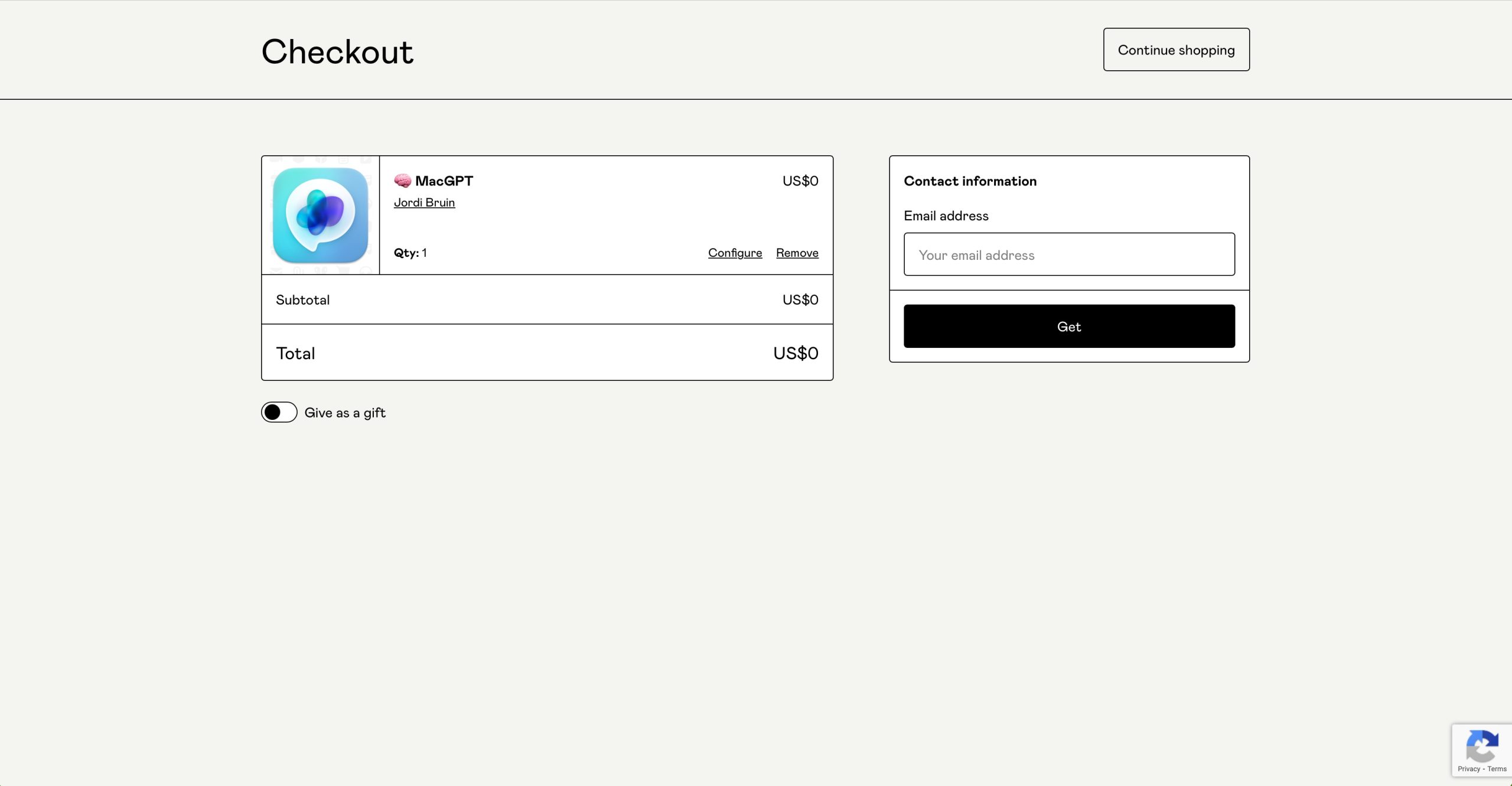 1. ขั้นตอนแรกให้เข้าไปยังหน้าเว็บไซต์ MacGPT ก่อน จากนั้นกรอกตัวเลข 0 ลงในค่าใช้จ่าย และเลือก “i want this”