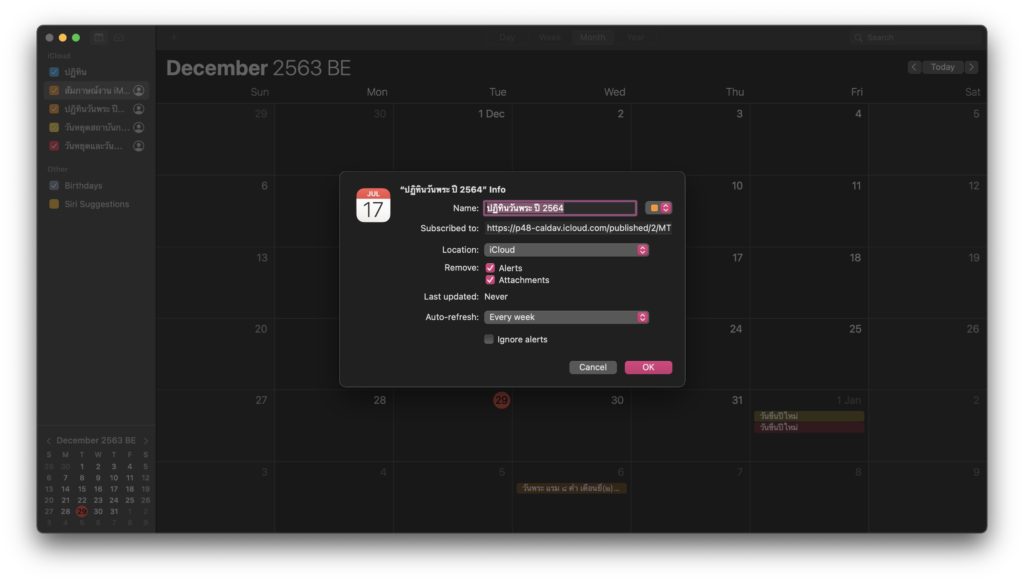 วิธีเพิ่มปฏิทินวันหยุด วันสำคัญ วันพระ และวันหยุดสถาบันการเงิน ประจำปี 2564 บน iPhone, iPad และ Mac