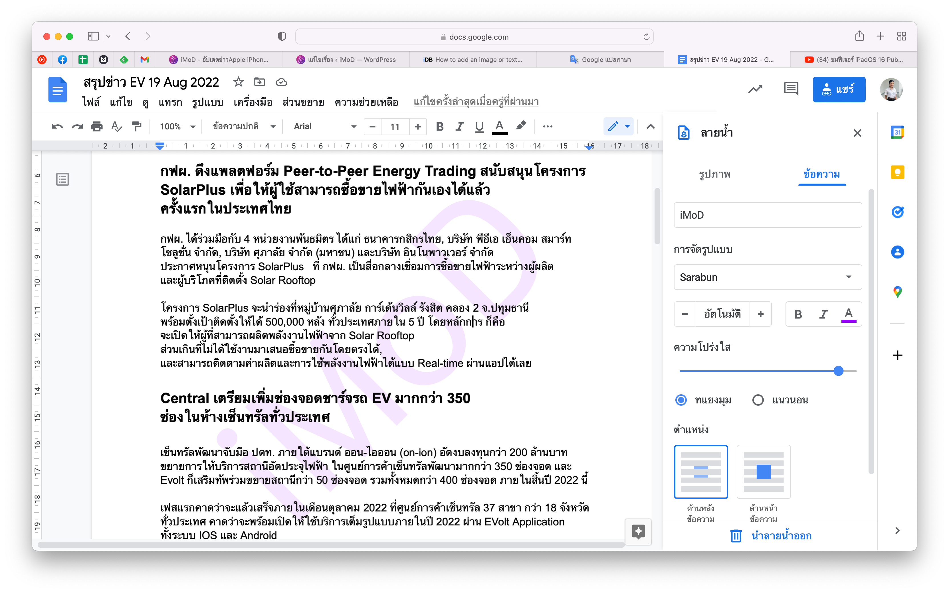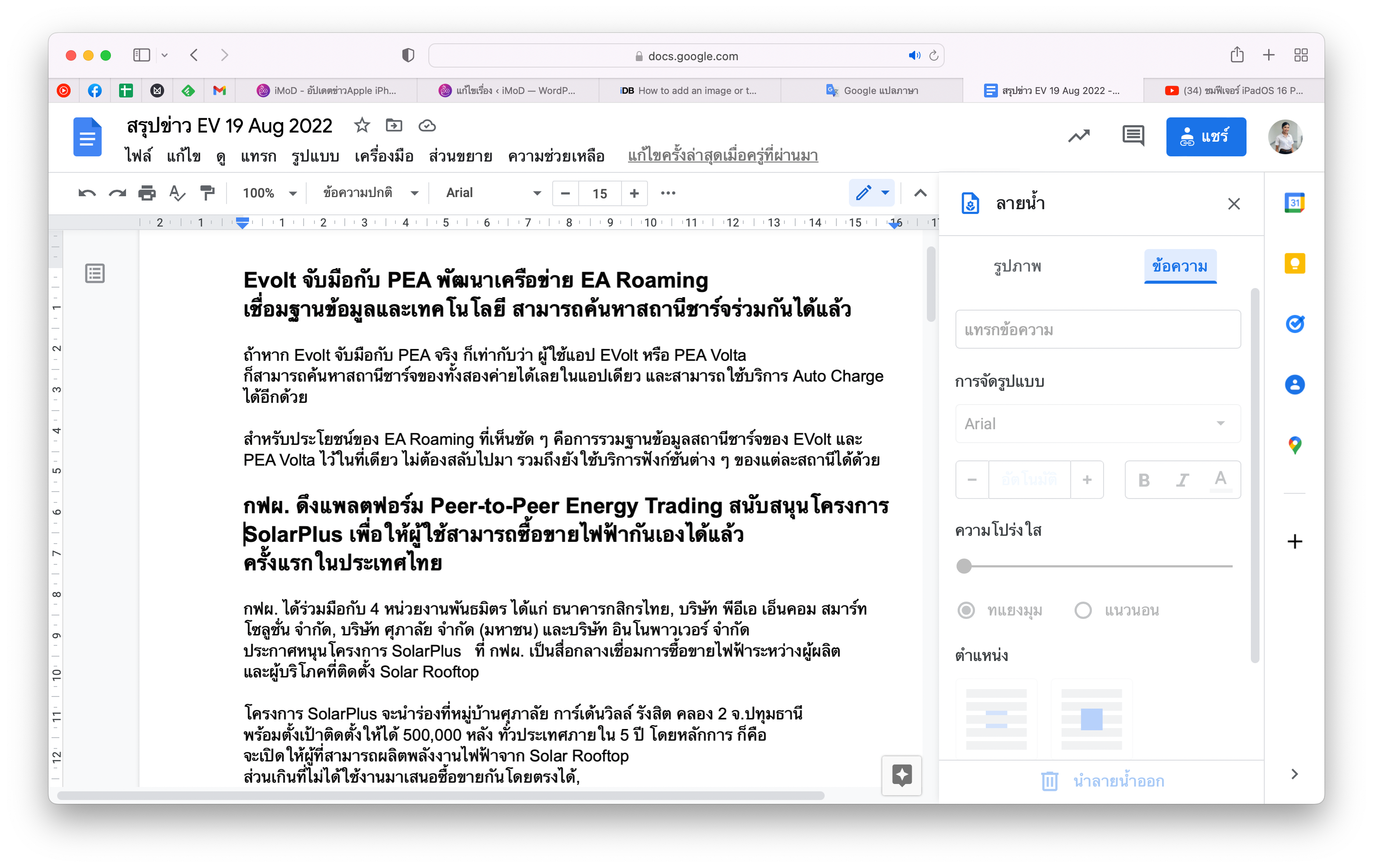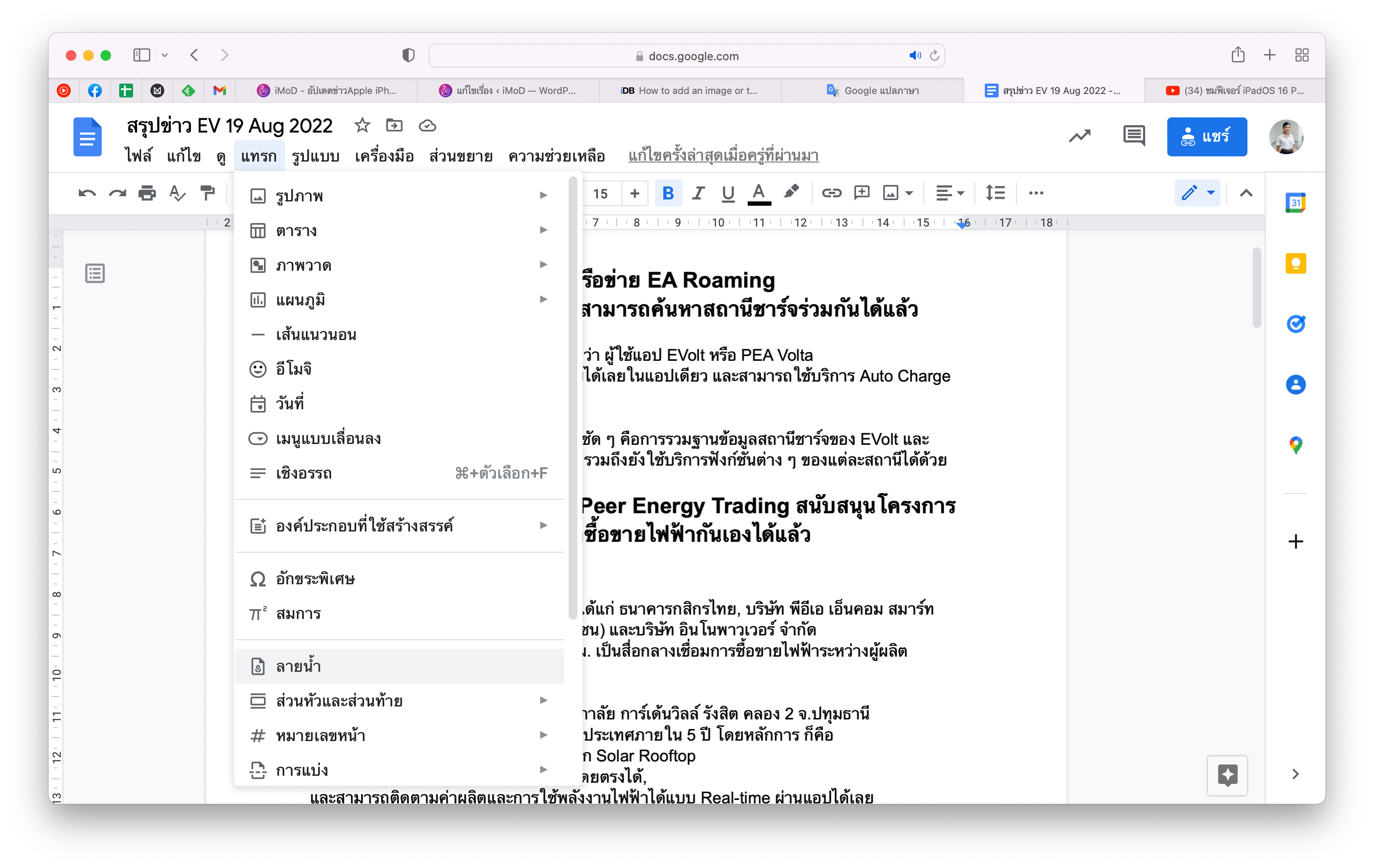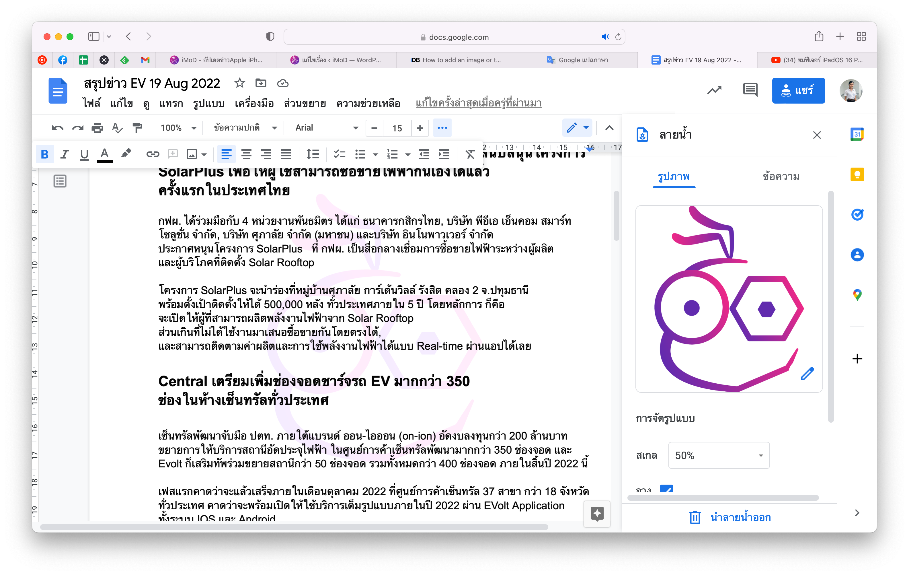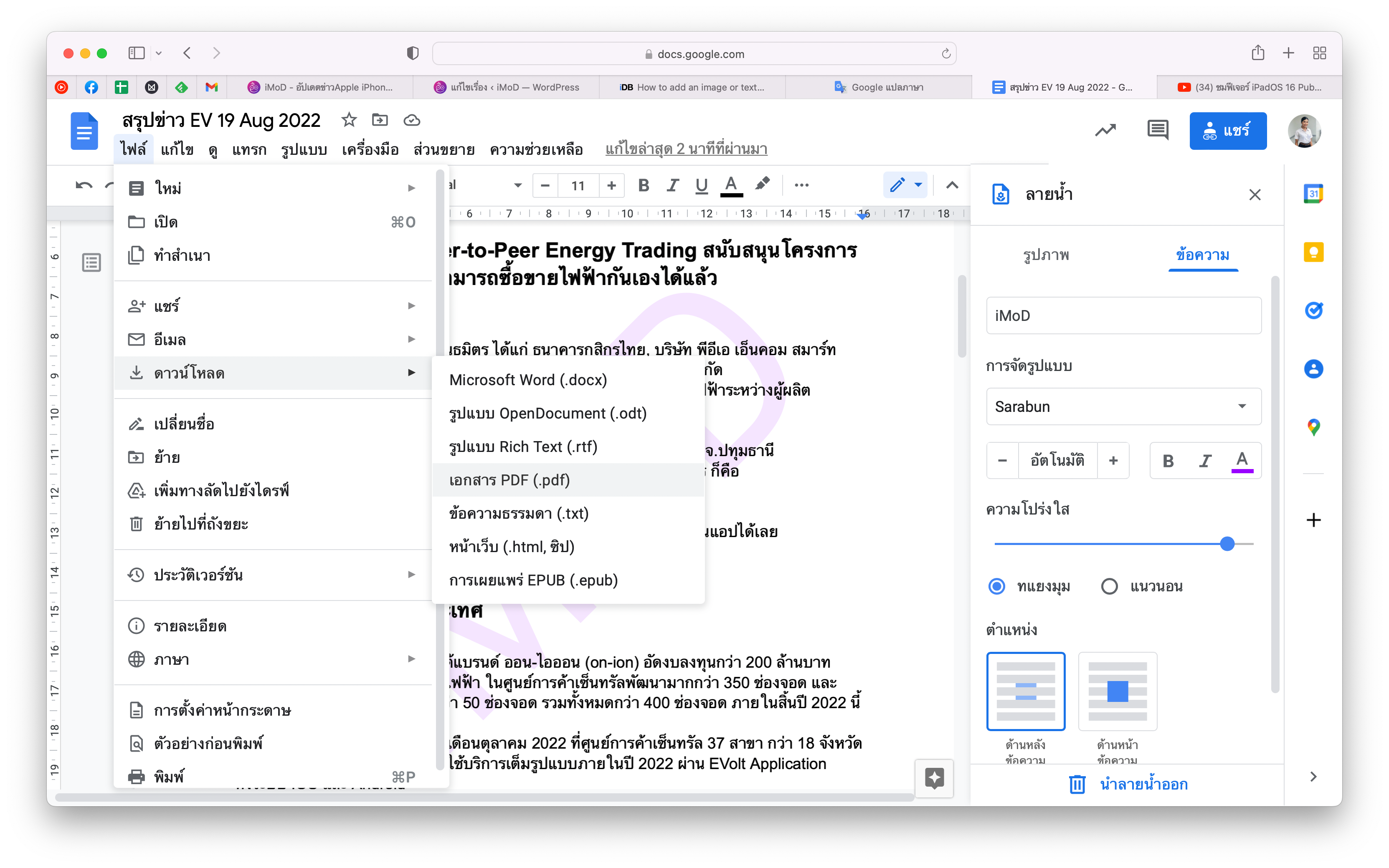 How to เพิ่มลายน้ำในเอกสาร Google Docs