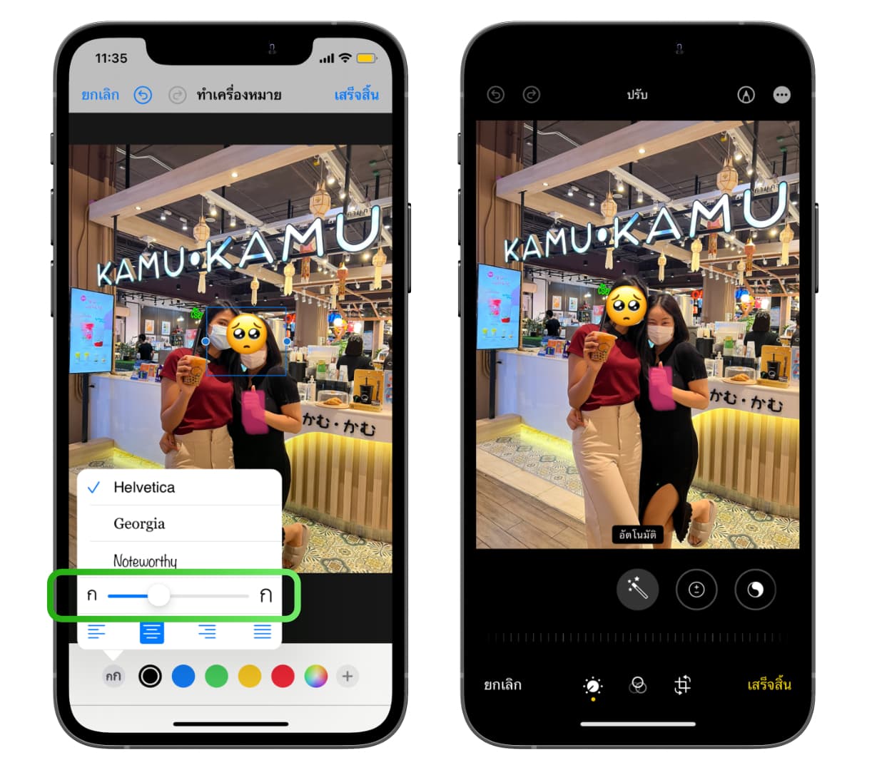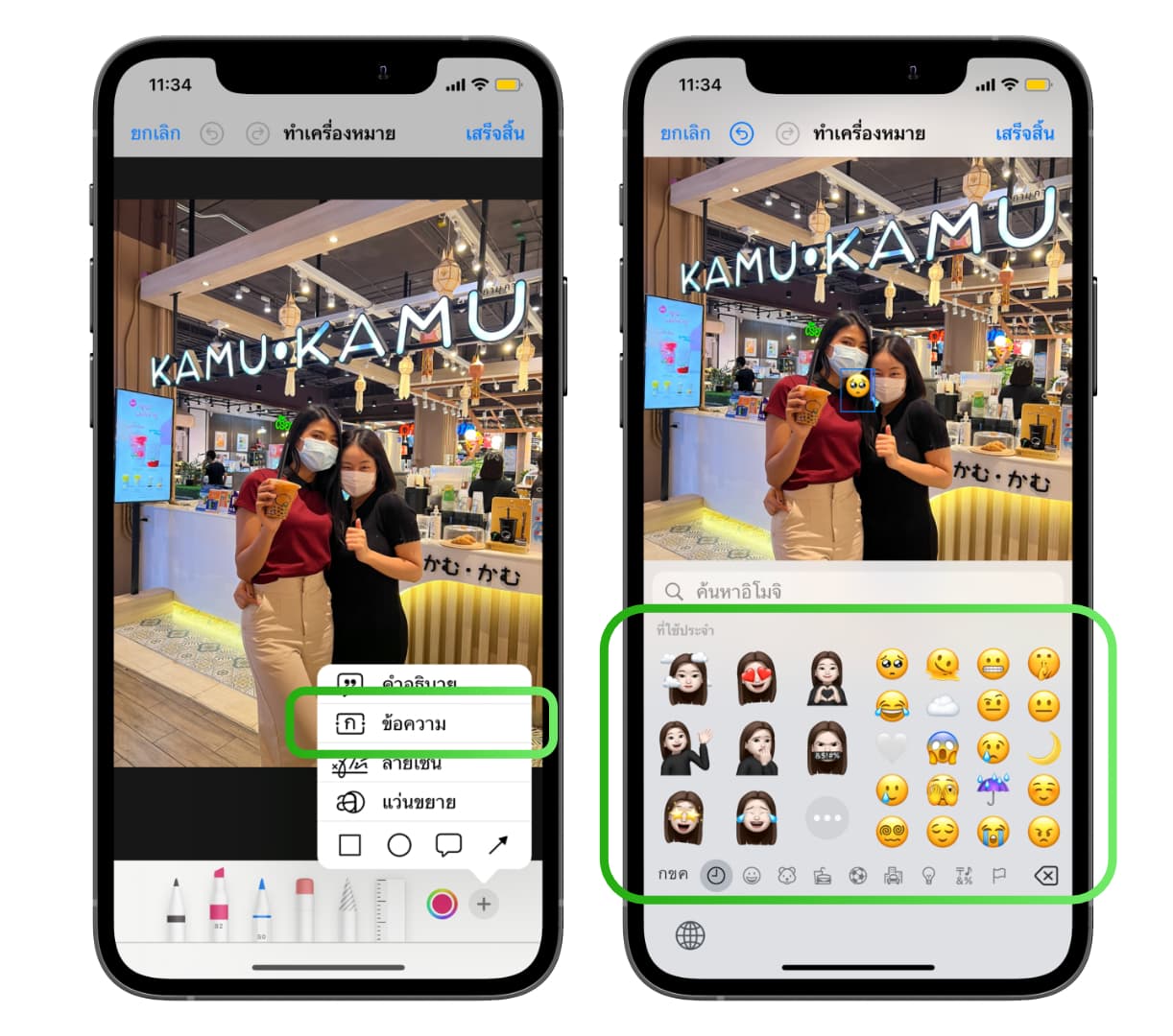 ลองใช้เครื่องมือเพิ่มข้อความใน Mark Up > เลือกใช้อิโมจิแทนตัวหนังสือ