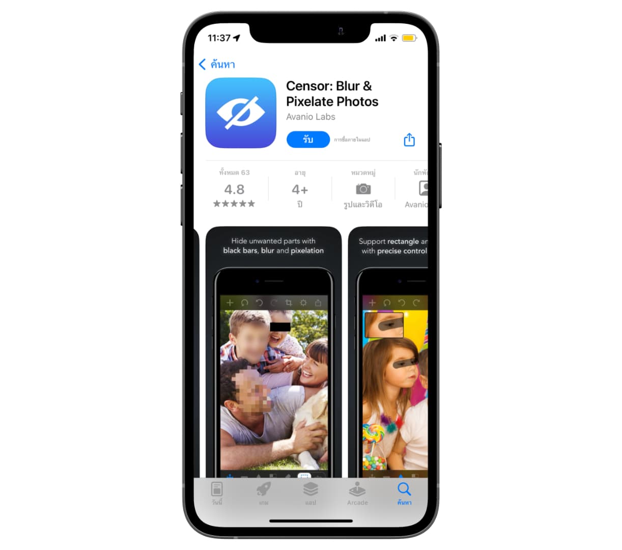 ดาวน์โหลดแอป : https://apps.apple.com/th/app/censor-blur-pixelate-photos/id1125820377