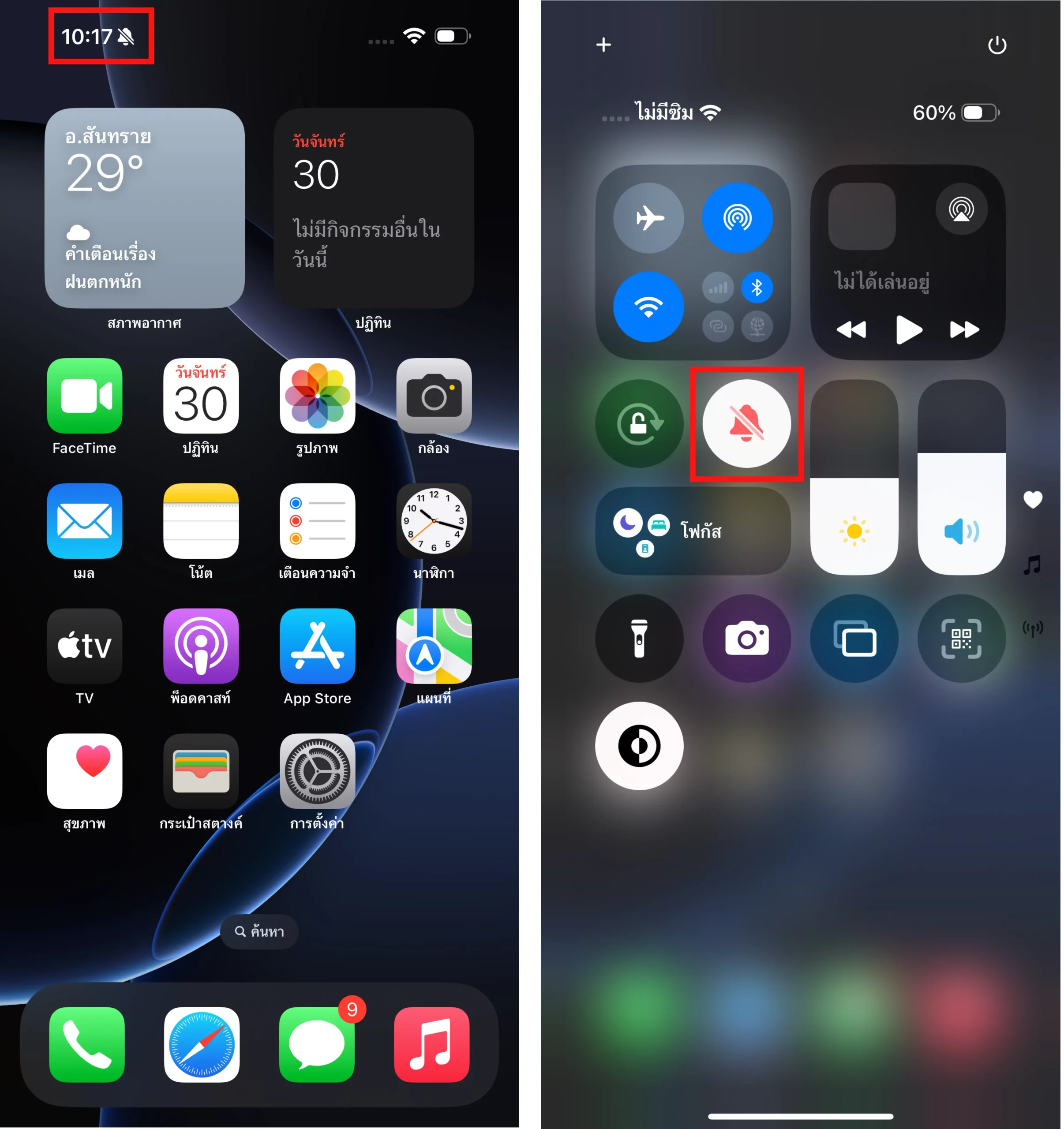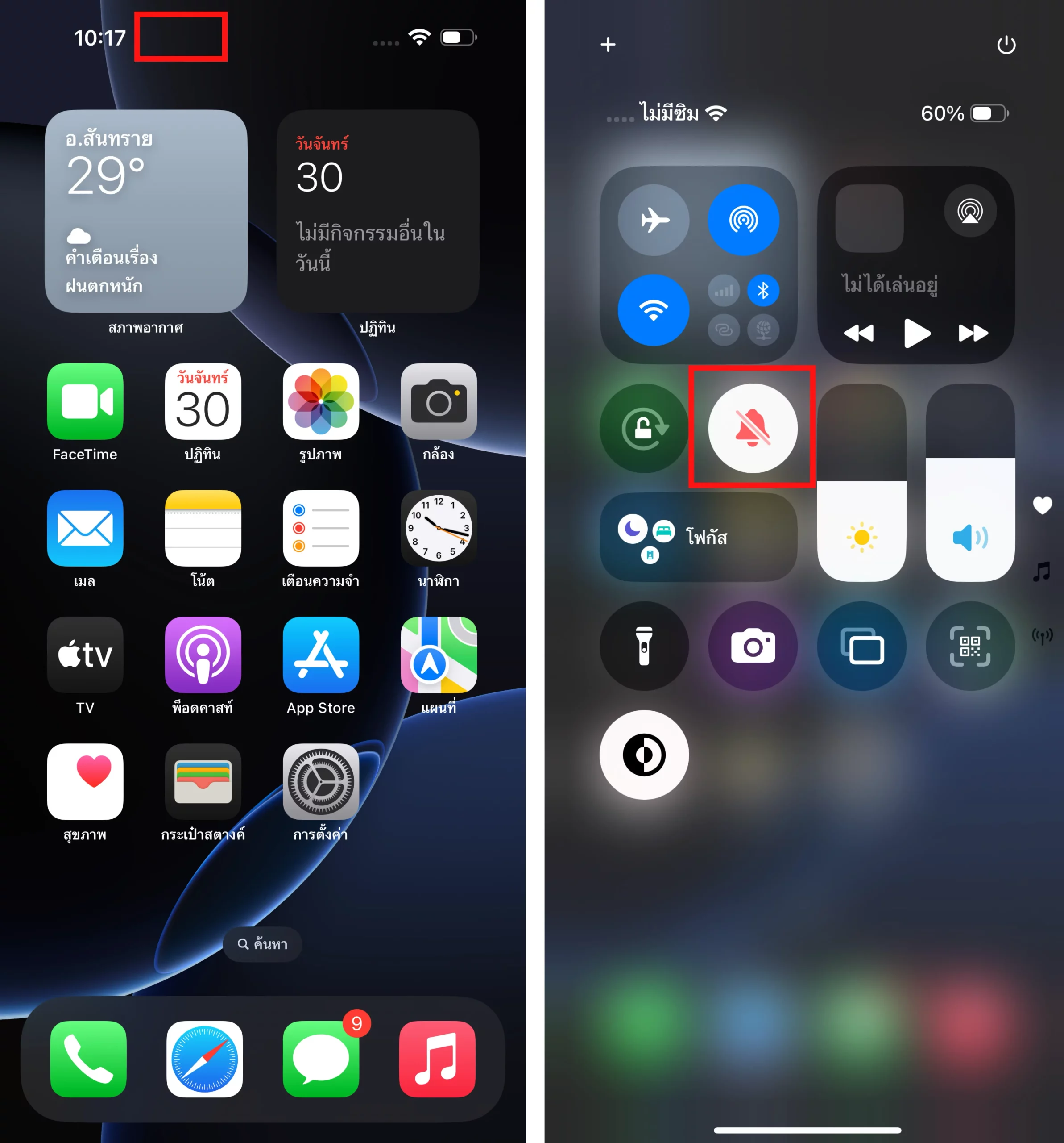 ไอคอนโหมดปิดเสียง (Silent) หายไป
