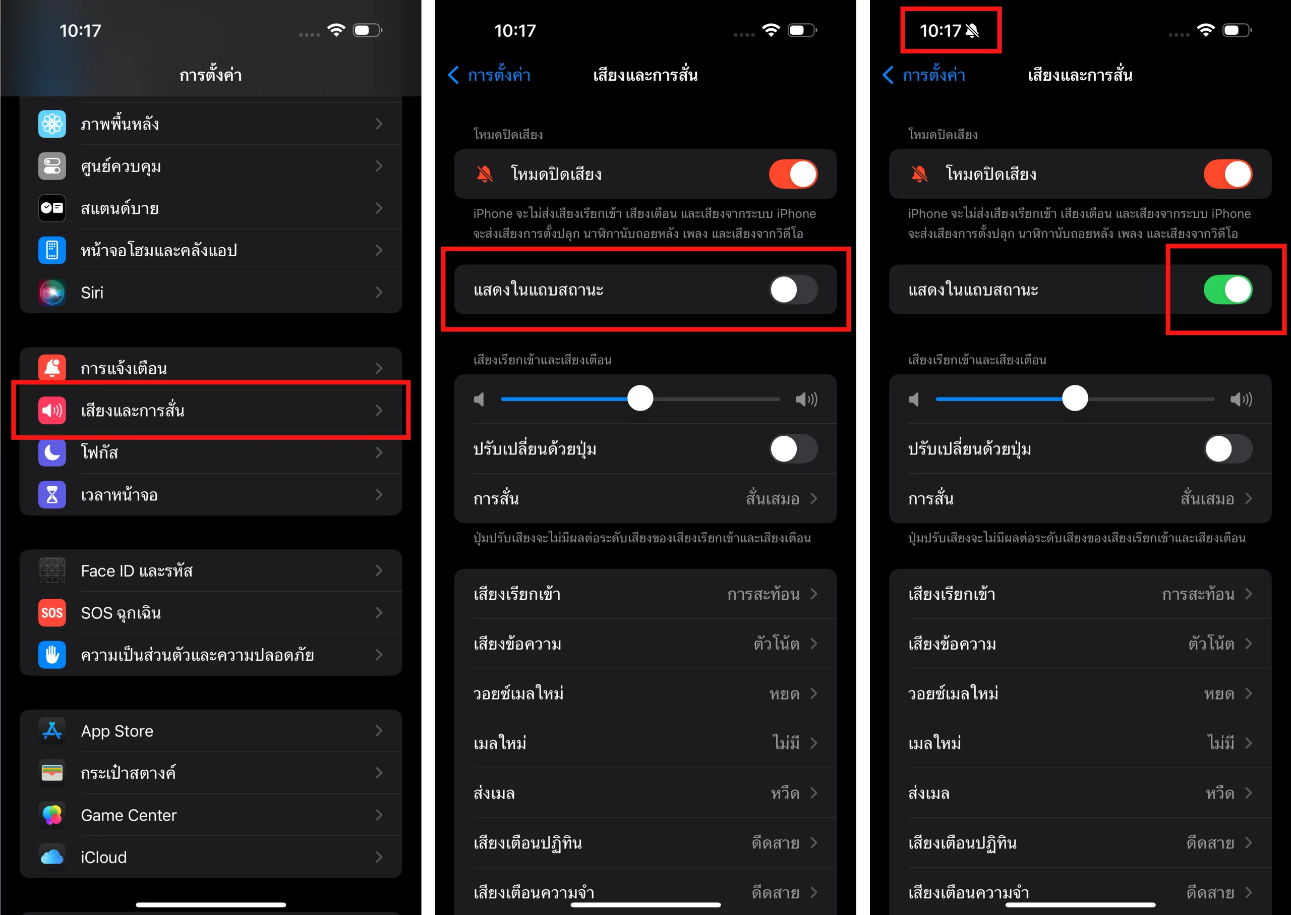 ไปที่การตั้งค่า > เสียงและการสั่น > แตะเปิด “แสดงในแถบสถานะ”