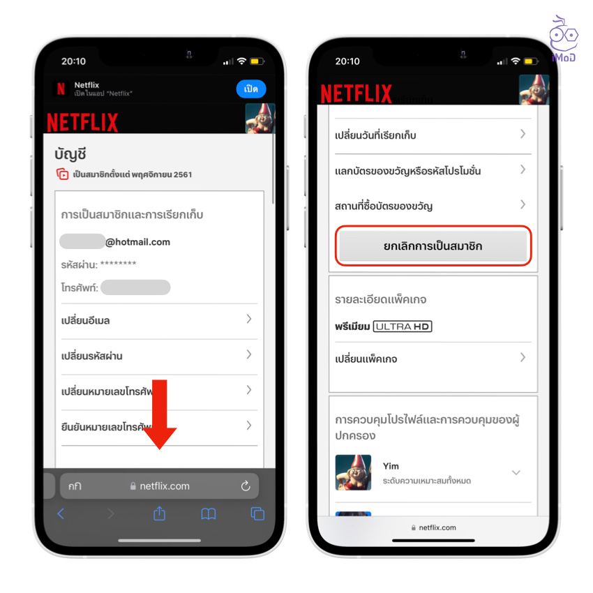 สิ่งที่ต้องทราบคือ เราไม่สามารถยกเลิกการรับสมัคร Netflix ผ่านแอป iOS บน iPhone หรือ iPad ได้ แต่เราจะต้องเข้าไปยกเลิกผ่านเว็บไซต์ของ Neflix เท่านั้น ซึ่งสามารถทำได้ผ่านเว็บบราวเซอร์ทั้งบน iPhone, iPad รวมถึงคอมพิวเตอร์ด้วย