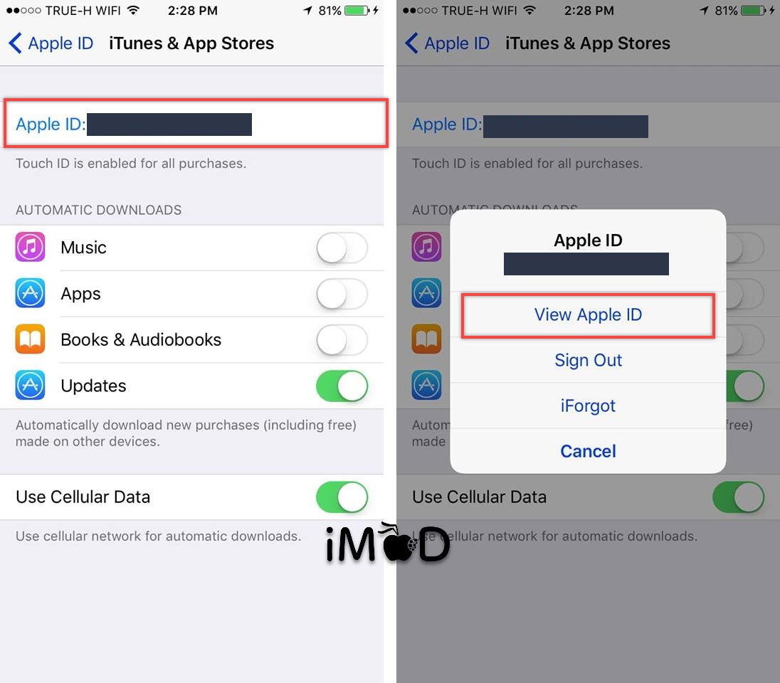 แตะที่ Apple ID ด้านบน > View ID (ดู Apple ID)