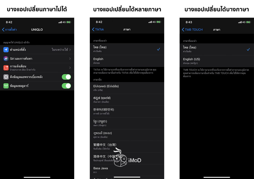 วิธีเปลี่ยนภาษาแอปที่ต้องการบน iPhone ใน iOS 13 โดยไม่ใช้ภาษาที่ตั้งค่าใช้ในเครื่อง