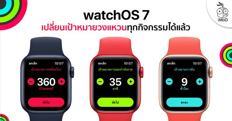 watchOS 7 มาพร้อมกับการตั้งค่าเป้าหมายทั้ง 3 วงแหวนได้แล้วบน Apple Watch ก่อนหน้านี้เราจะเปลี่ยนเป้าหมายได้เฉพาะวงแหวนการเคลื่อนไหวเท่านั้น แต่ครั้งนี้เราสามารถเปลี่ยนเป้าหมายทั้งวงแหวน การเคลื่อนไหว การออกกำลังกาย และการยืนได้ ชมวิธีกัน