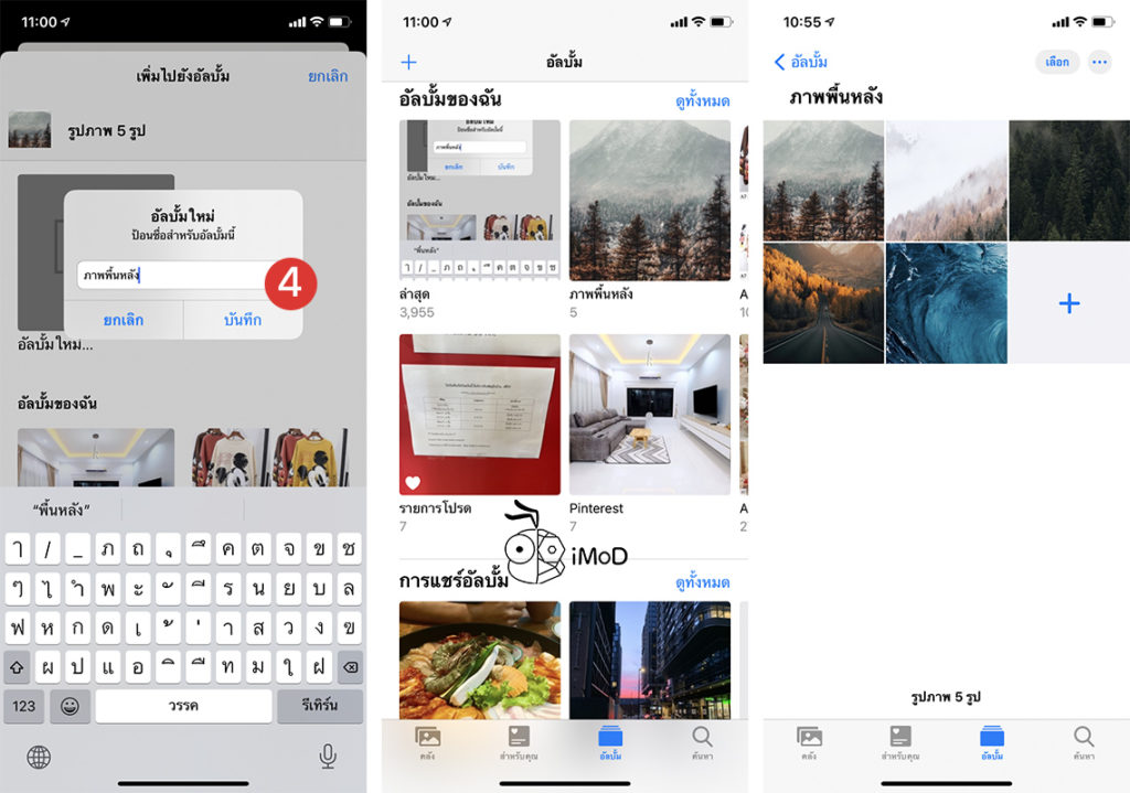 ตั้งชื่ออัลบั้ม > เราก็จะได้ภาพพื้นหลังที่อยู่ในอัลบั้มที่เราสร้างขึ้นมาใหม่