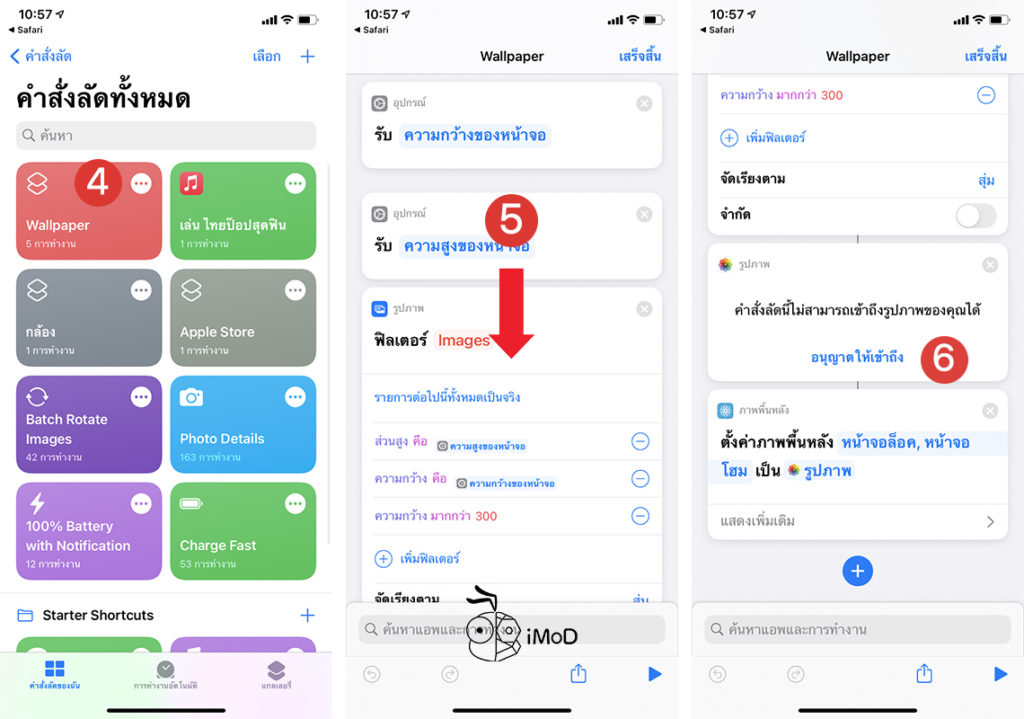 เมื่อเรารับคำสั่งลัดมาแล้ว ให้เราแตะไอคอน 3 จุดที่คำสั่งลัด Wallpaper > เลื่อนลงมาด้านล่าง แตะ อนุญาตให้เข้าถึง