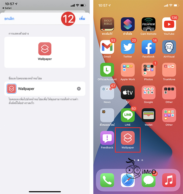 แตะ เพิ่ม > เราก็จะได้คำสั่งลัด Wallpaper แสดงบนโฮม เพื่อให้การเปลี่ยนพื้นหลังทำได้รวดเร็วและง่ายมากขึ้น