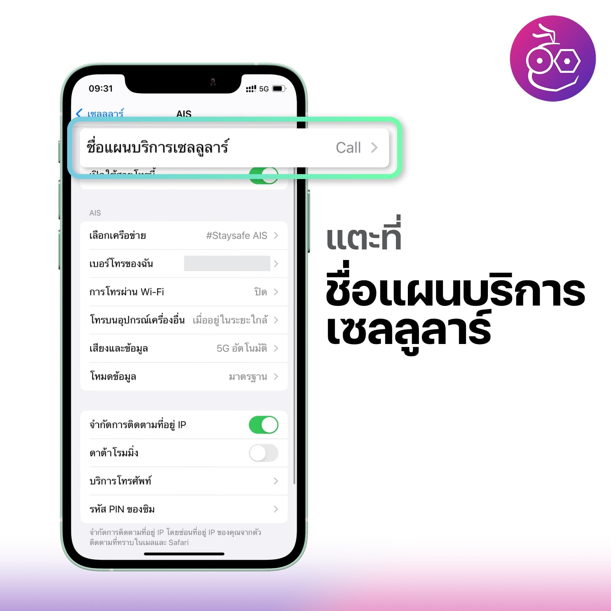 แตะที่ชื่อแผนบริการเซลลูลาร์
