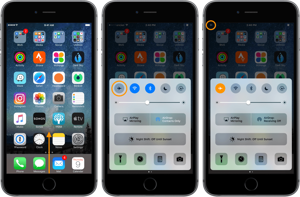 และวิธีก็ง่ายแสนง่ายเพียงแต่สไลด์จากด้านล่างขึ้นมา เลื่อนมาทางซ้ายสุดแล้วเลือกสัญลักษณ์ “เครื่องบิน” ซึ่งการไม่เชื่อมต่ออะไรเลยจะสามารถทำให้ชาร์จไฟได้อย่างรวดเร็ว (เอาไว้เวลาด่วน ๆ ก็ลองทำดูไม่เสียหาย)