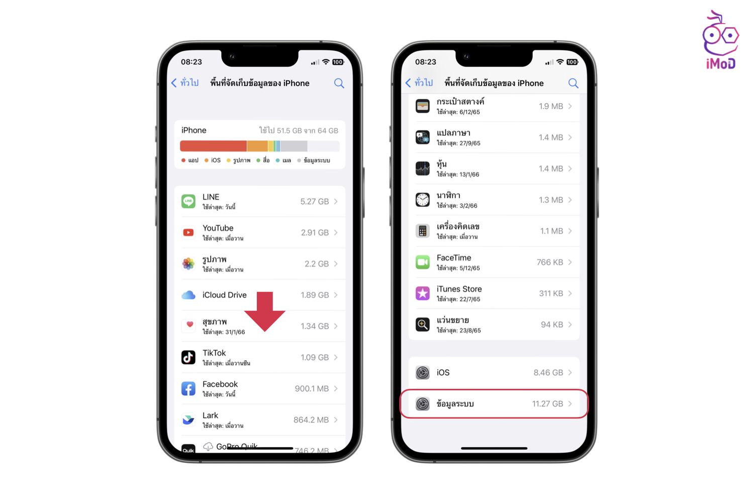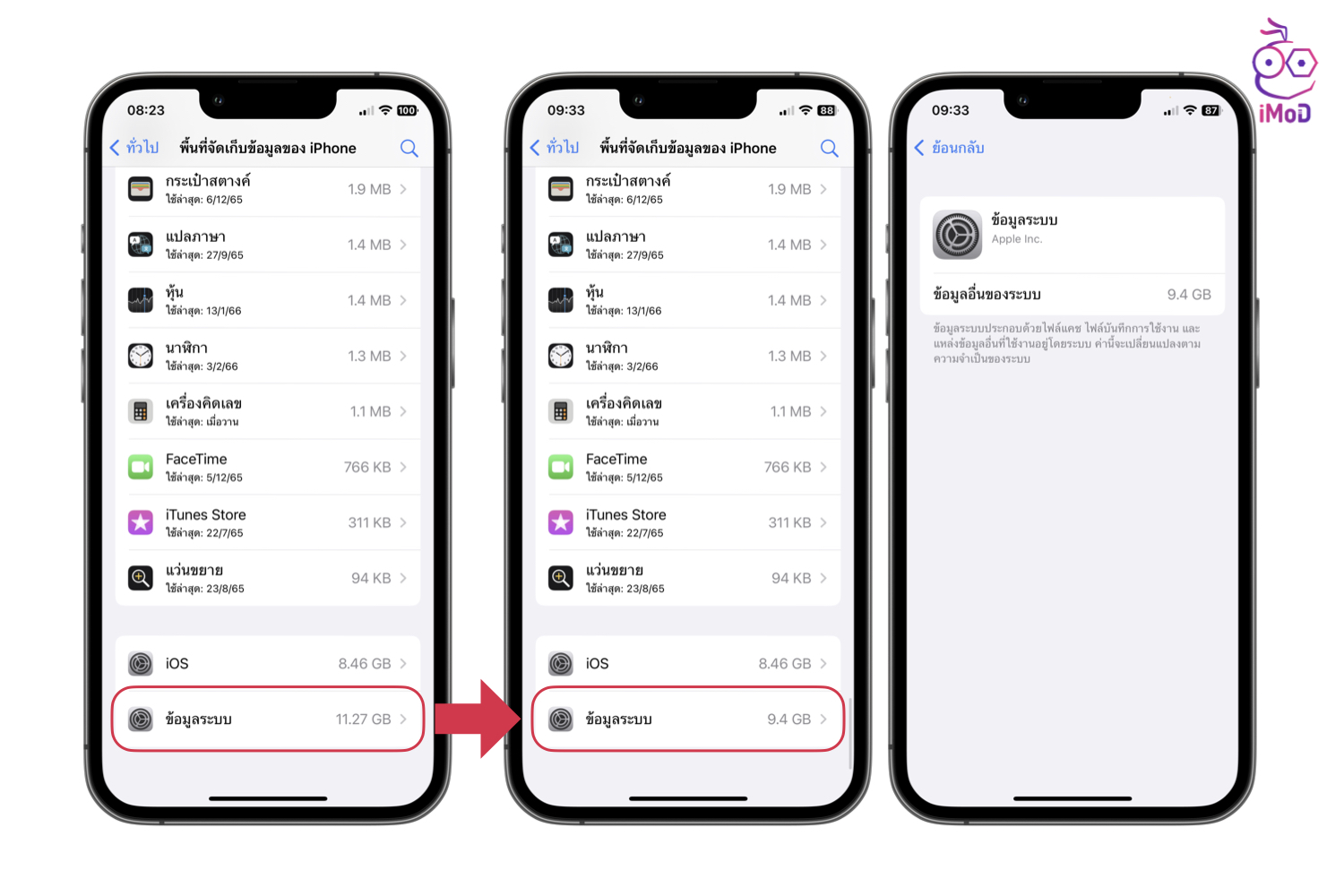 หลังจากที่เราได้เคลียร์แคช iPhone และในแอปต่าง ๆ รวมถึงลบไฟล์ที่ไม่จำเป็นออกไปแล้ว ไฟล์ข้อมูลระบบ (System Data) ก็จะมีขนาดลดลง ลองทำกันดูนะคะ