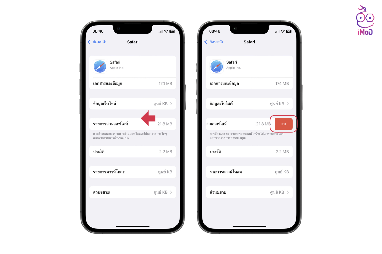 นอกจากนี้ ถ้าหากเราเคยบันทึกรายการอ่านออฟไลน์ใน Safari ไว้เป็นจำนวนมาก แต่ตอนนี้ไม่ได้เข้าไปอ่านแล้ว ก็สามารถเคลียร์รายการอ่านออฟไลน์ออกได้