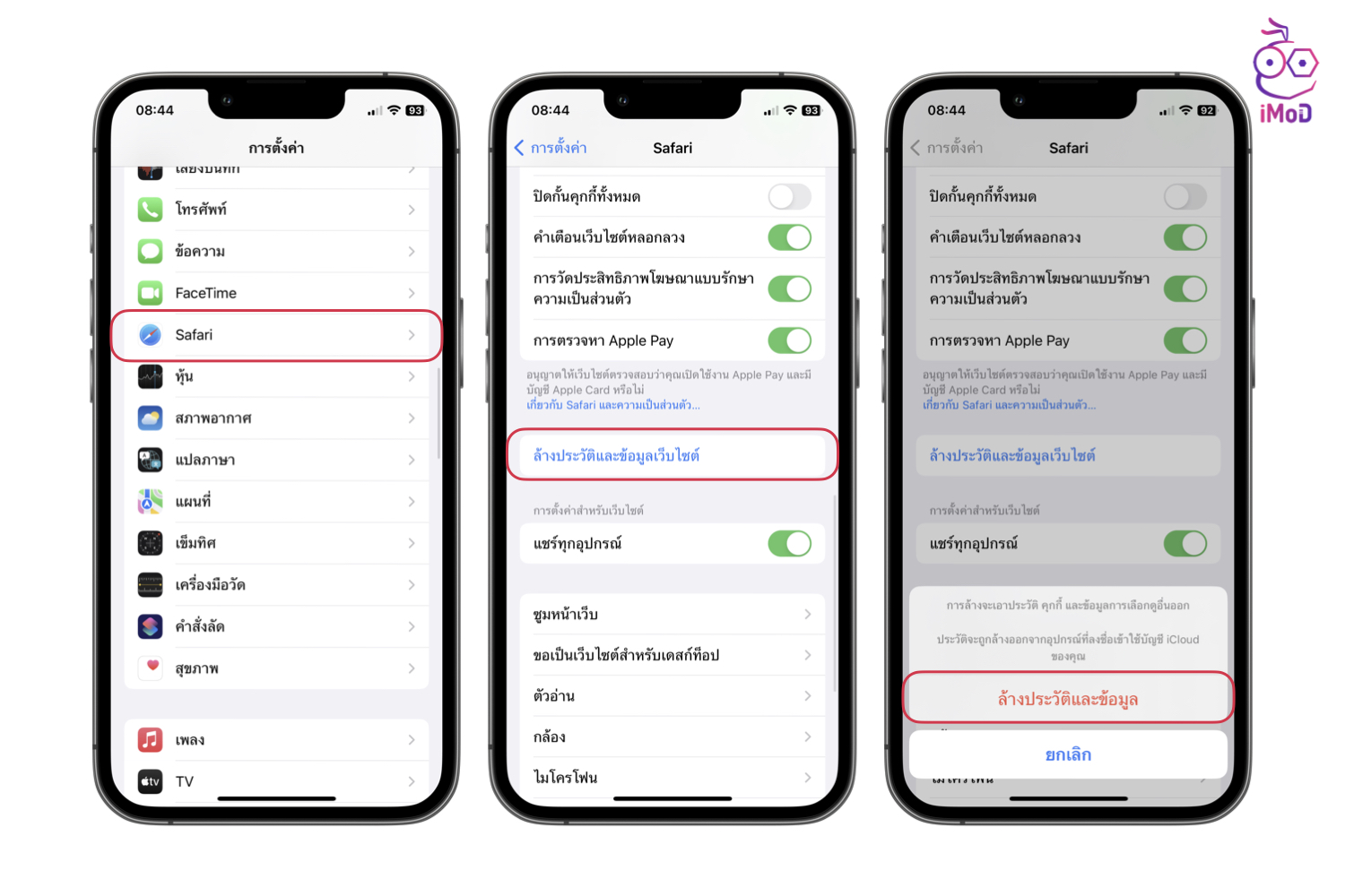 วิธีเคลียร์ก็ง่าย ๆ เลย ไปที่ การตั้งค่า (Settings) > Safari > ล้างประวัติและข้อมูลเว็บไซต์ > ยืนยันการล้างข้อมูล