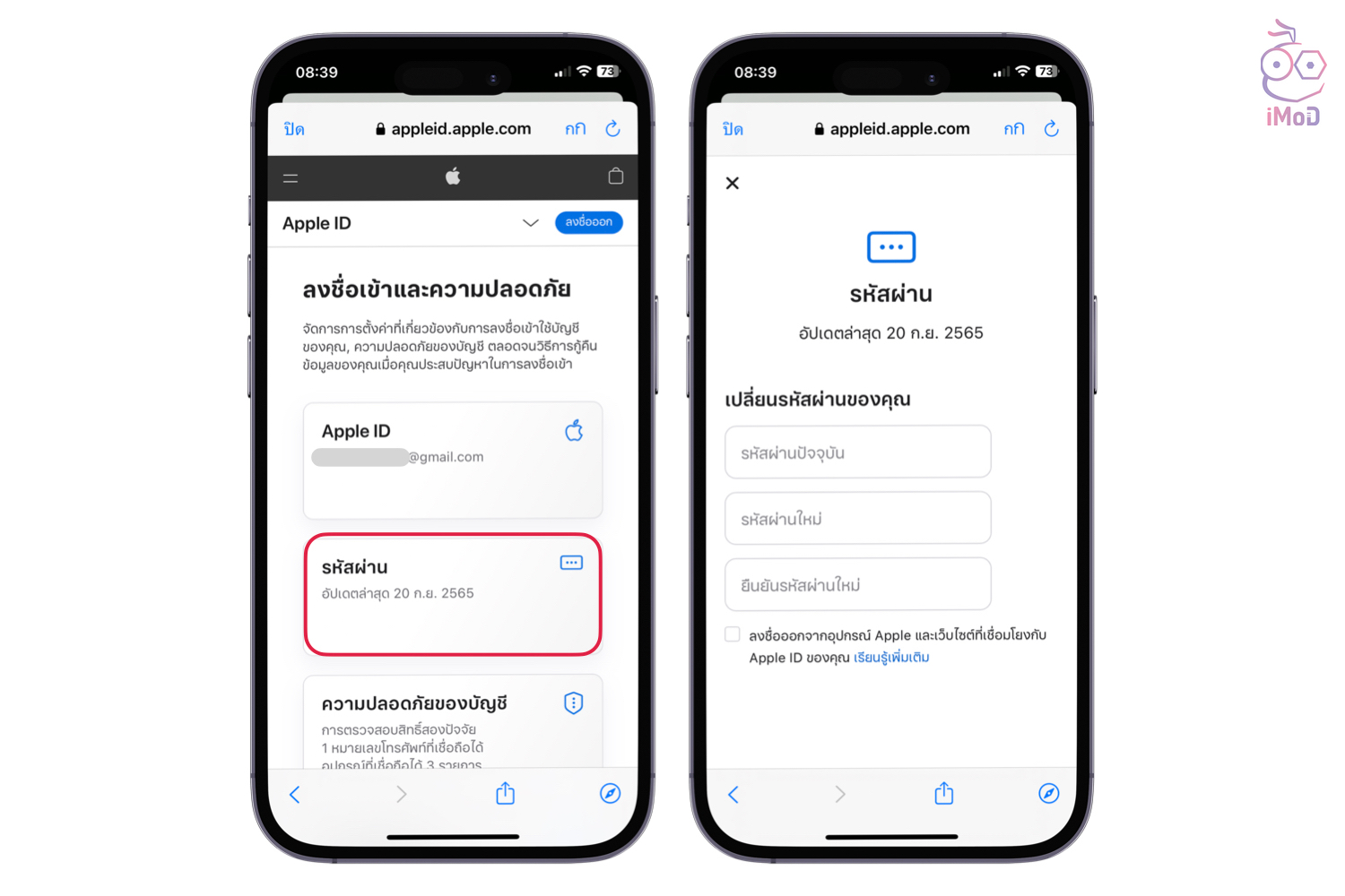 จากนั้นก็ทำการเปลี่ยนรหัสผ่านได้เลย ดังตัวอย่าง เป็นบัญชี Apple ID ให้ลงชื่อเข้าใช้ และไปยังส่วนของรหัสผ่าน จากนั้นก็ทำการเปลี่ยนรหัสผ่านใหม่ที่ปลอดภัยมากขึ้น โดยตั้งรหัสผ่านให้คาดเดายาก [10 เคล็ด (ไม่) ลับ หลีกเลี่ยงการโดนแฮ็คข้อมูลออนไลน์ โดย NCSC]