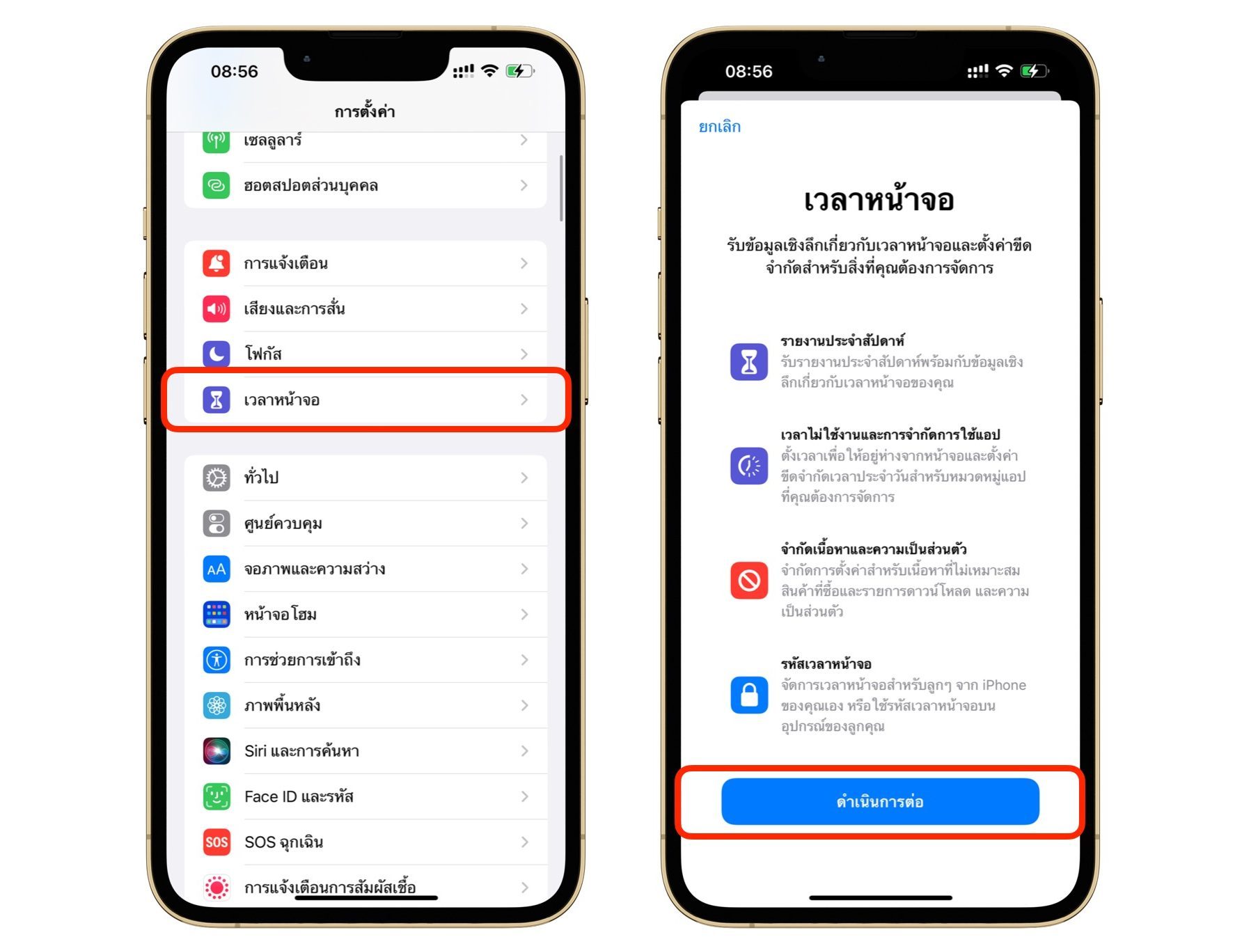 ไปที่การตั้งค่า > เวลาหน้าจอ > แตะดำเนินการต่อ