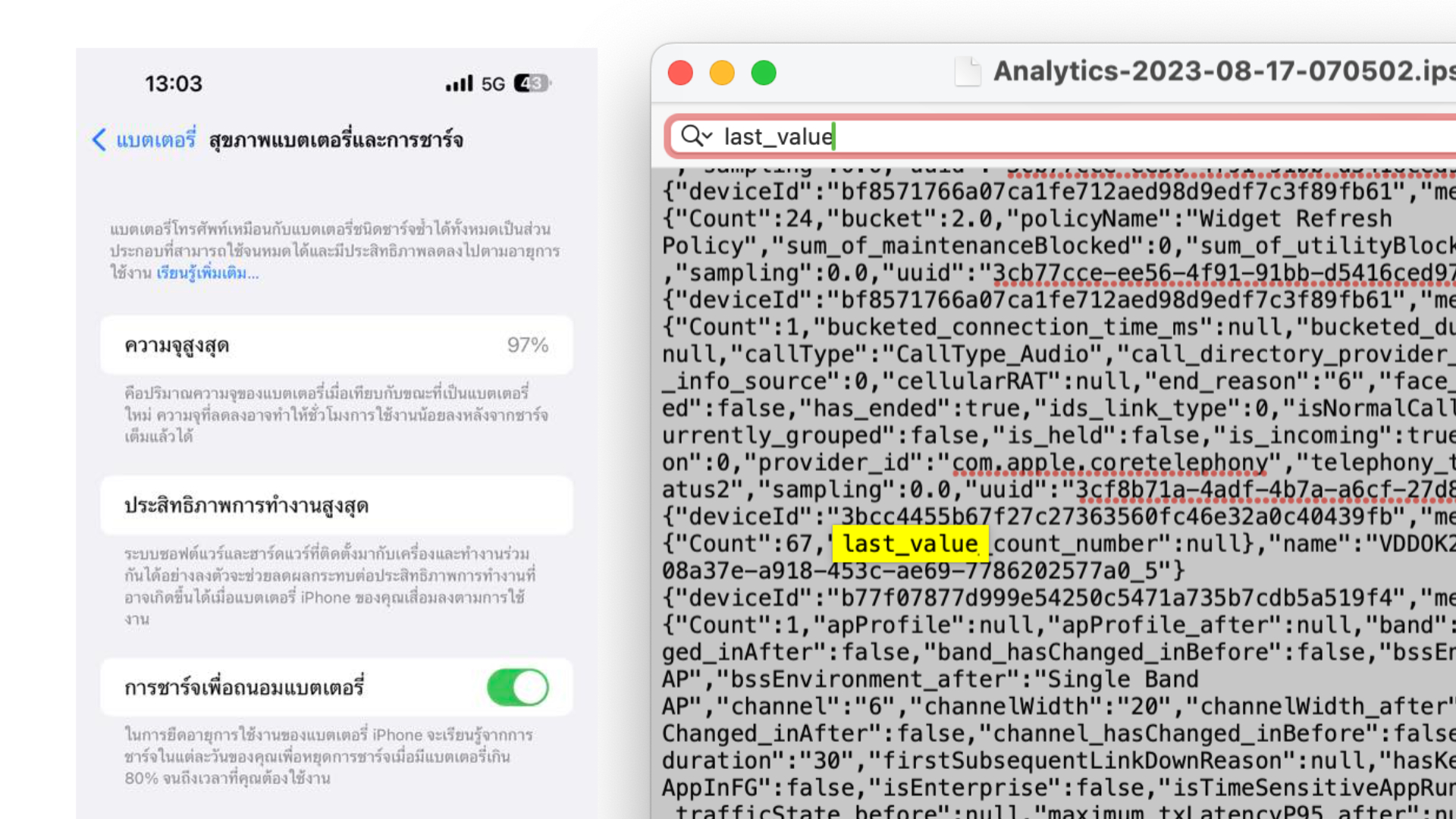 - iOS 16 ให้พิมพ์ว่า last_value_CycleCount