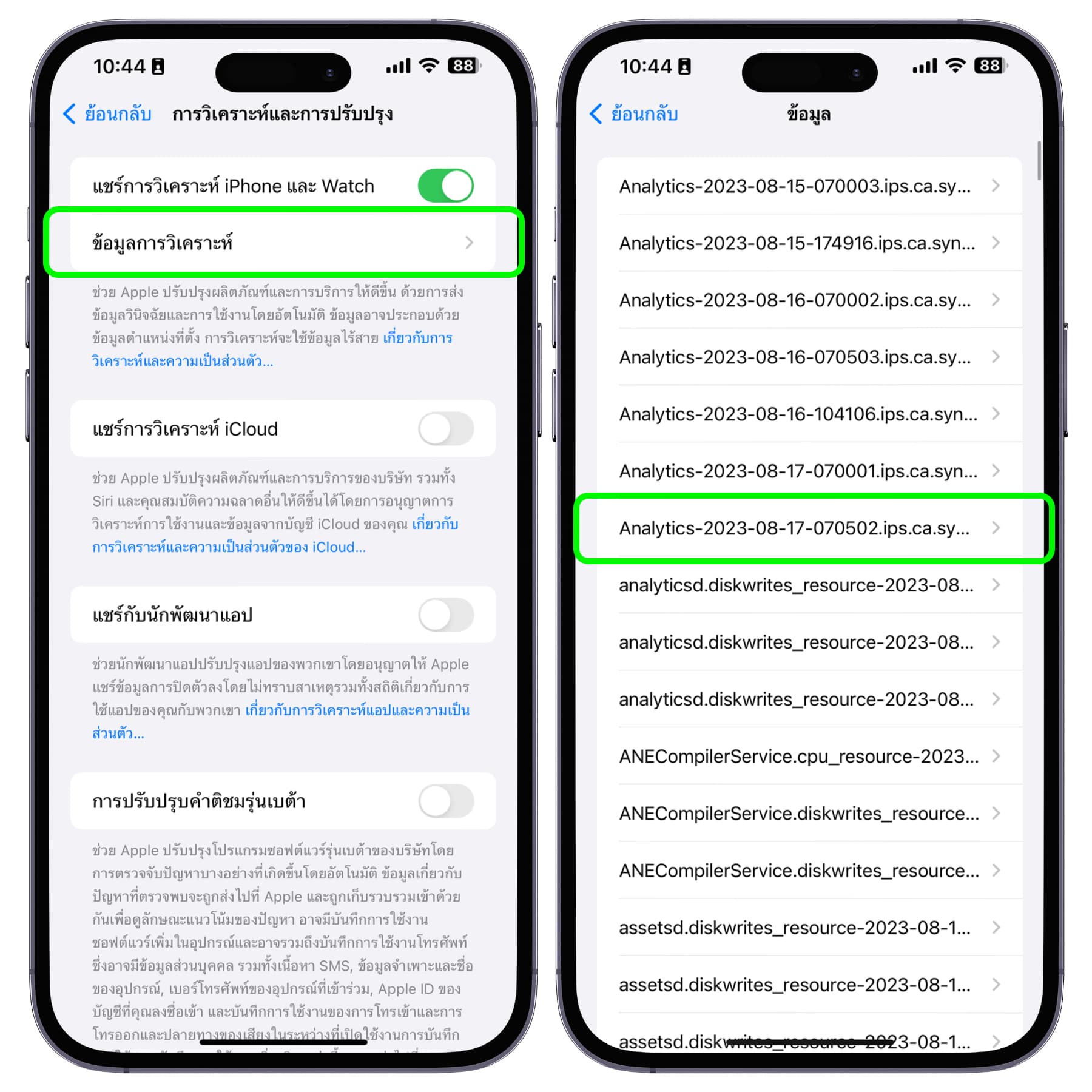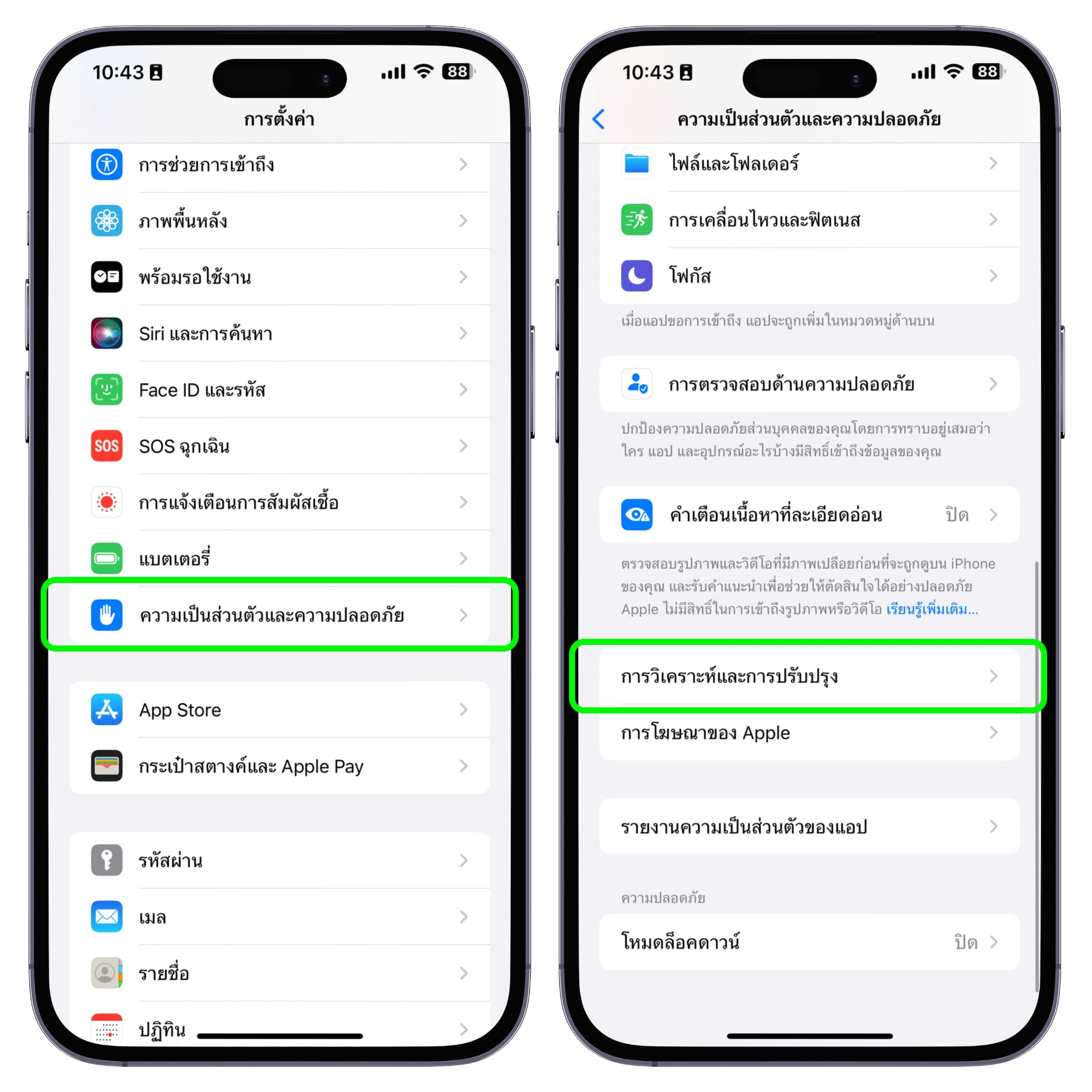 ให้เข้าไปที่ แอปการตั้งค่า > ความเป็นส่วนตัวและความปลอดภัย > การวิเคราะห์และการปรับปรุง